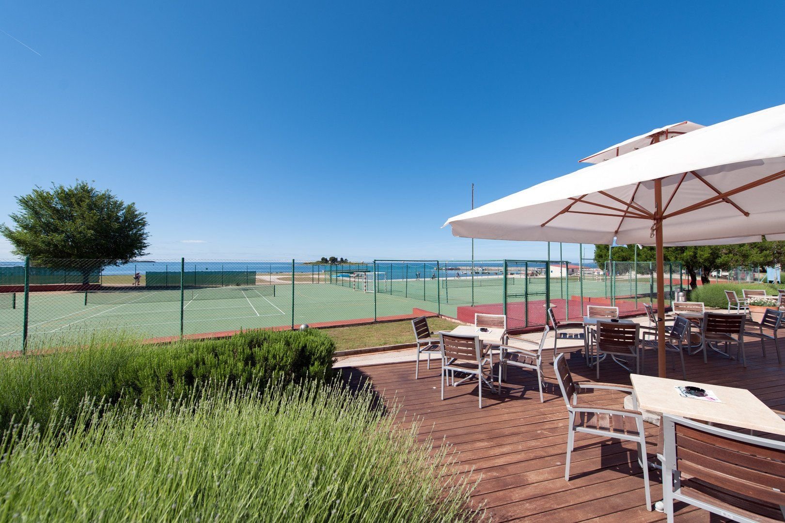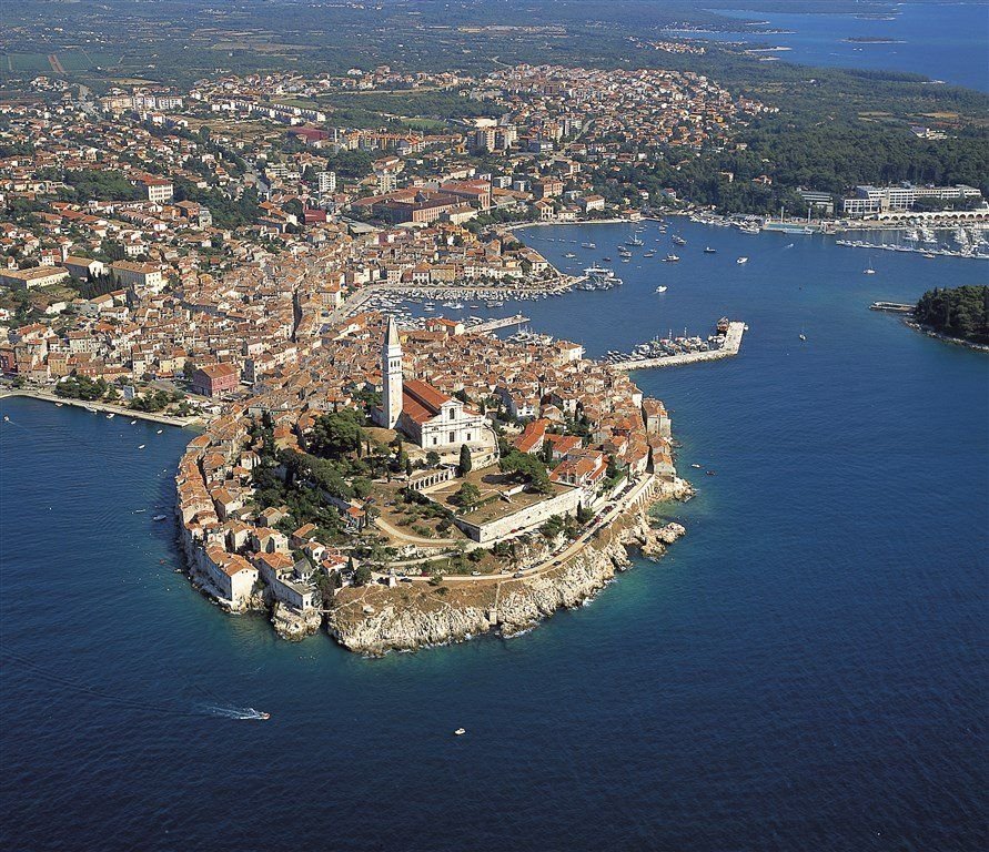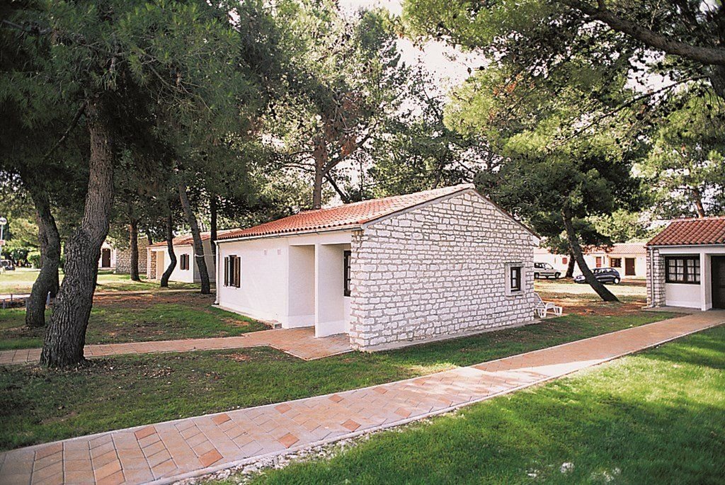 Kompletně vybavený resort, zastíněný borovicemi a olivovníky, leží přímo na pláži asi 3 km jižně od centra Rovinje.