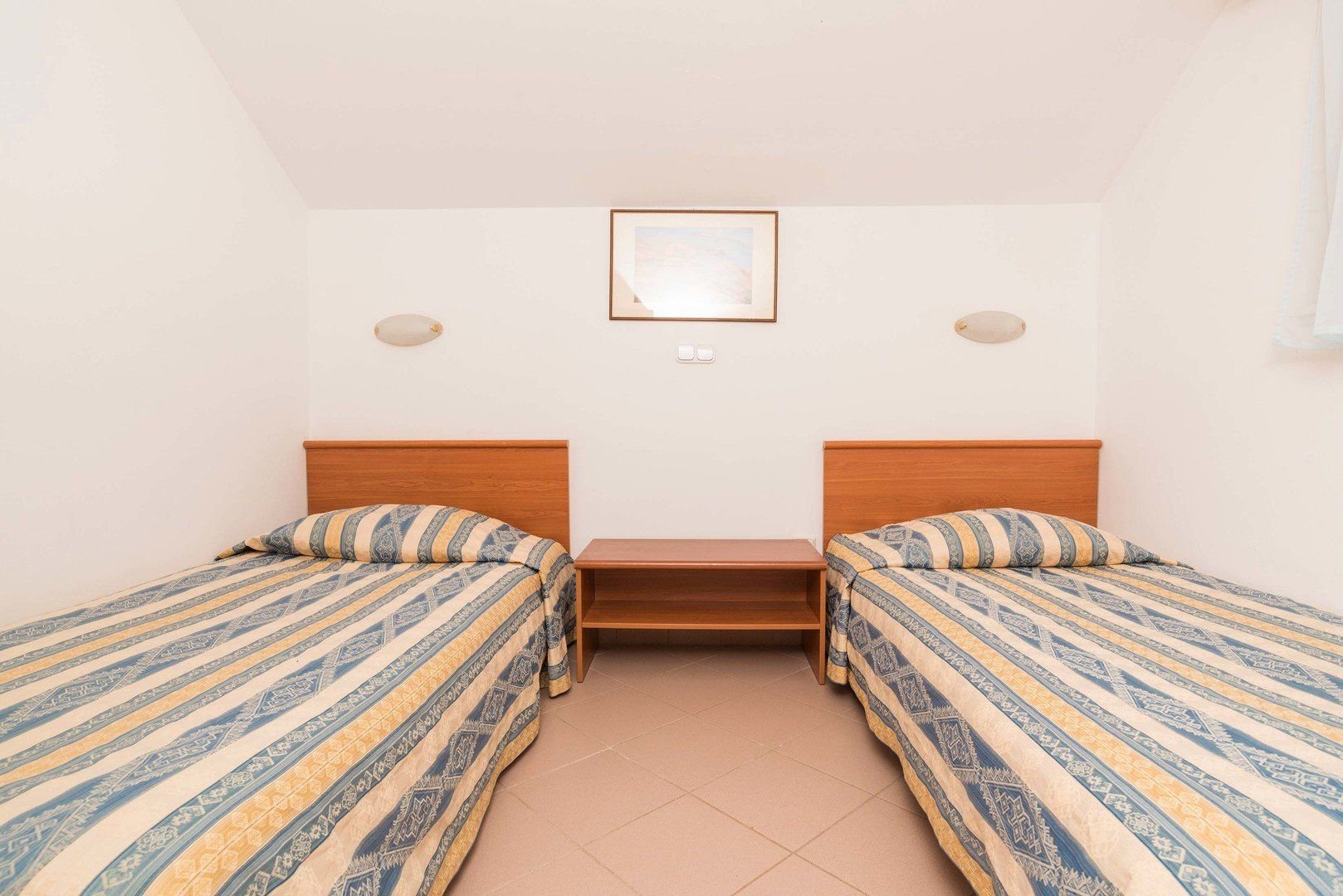 Studio pro 2-3 osoby: denní pokoj se 2 lůžky a rozkládacím křeslem. Apartmány pro 3 osoby: denní pokoj s 1 lůžkem, oddělená ložnice se 2 lůžky. Apartmány pro 4-5 osob: denní pokoj se 2 lůžky, případně další rozkládací lůžko, oddělená ložnice se 2 lůžky. Všechny apartmány jsou vybaveny vlastním soc.zařízením (koupelna, WC), kuchyňskou linkou s vybavením pro základní vaření, jídelním koutem, minichladničkou, TV, telefonem, ložním prádlem a balkonem nebo terasou.