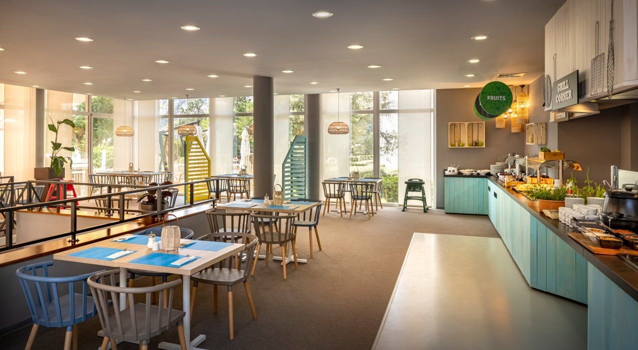 Snídaně a obědy od 7:00 do 13:00. Nealkoholické nápoje během jídla jsou zahrnuté v ceně (samoobsluha). Možnost vícenásobného vstupu do restaurace. Špičková káva, tematický koutek, koutek ostrovních lahůdek, zdravý koutek, minutkově připravená vajíčka, obědový koutek s čerstvě připravenými jídly.Večeře od 19:00 do 21:00. V nabídce jsou čerstvé pizzy, polévky, saláty, masa, ryby, zeleninové pokrmy i sladké dezerty. Nápoje nejsou zahrnuty v ceně. Každý večer speciální tématická nabídka (středomořská kuchyně, chutě Itálie). Restaurace Sunny Á la carte restaurace OlivaLounge bar