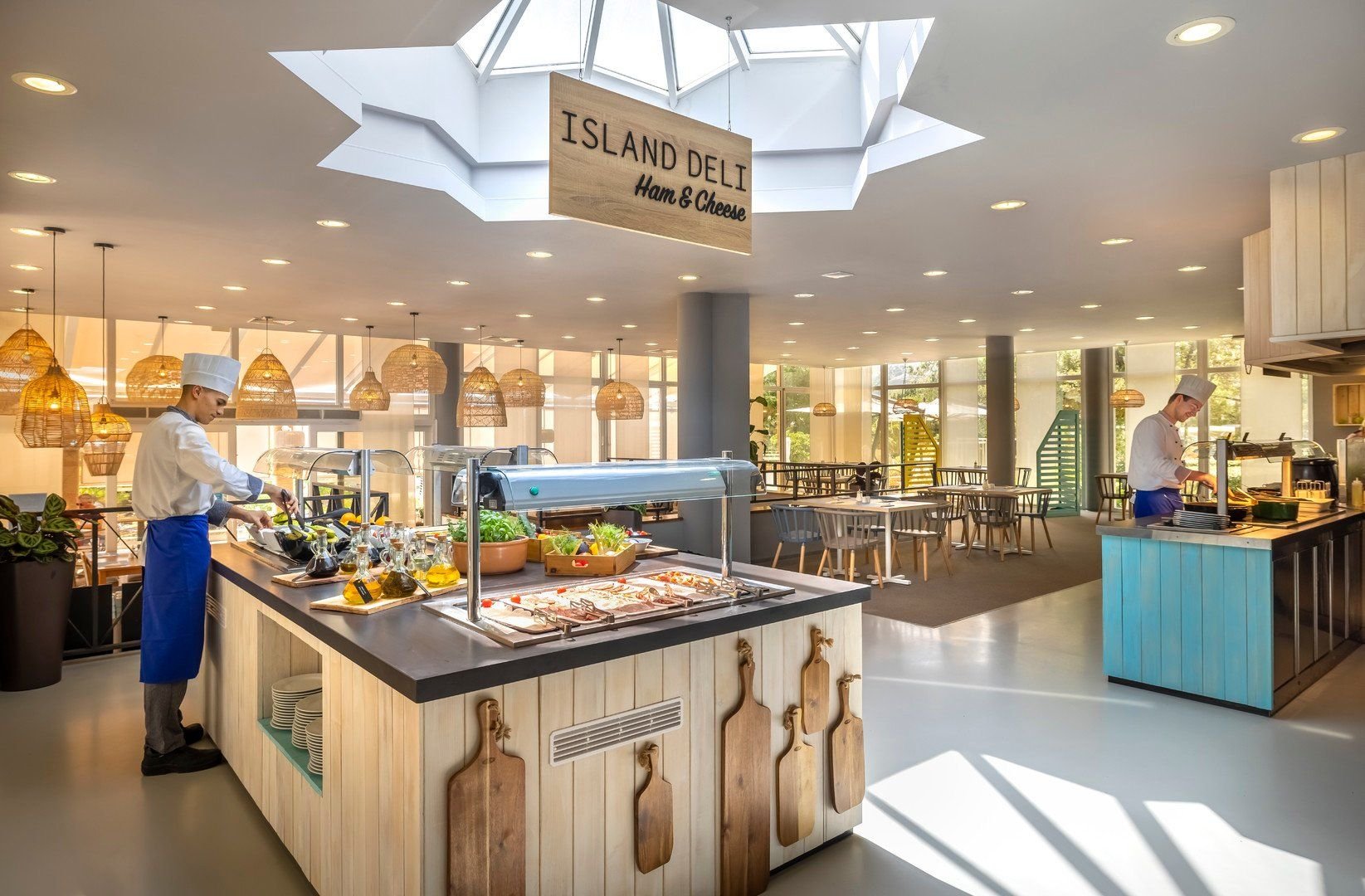 SUNNY BREAKFAST AND LUNCH: Snídaně a oběd od 8:00 do 14:00. Nealkoholické nápoje během jídla jsou zahrnuté v ceně (samoobsluha). Možnost vícenásobného vstupu do restaurace. Špičková káva, tematický koutek, koutek ostrovních lahůdek, zdravý koutek, minutkově připravená vajíčka, obědový koutek s čerstvě připravenými jídly.Restaurace Sunny Á la carte restaurace OlivaLounge bar