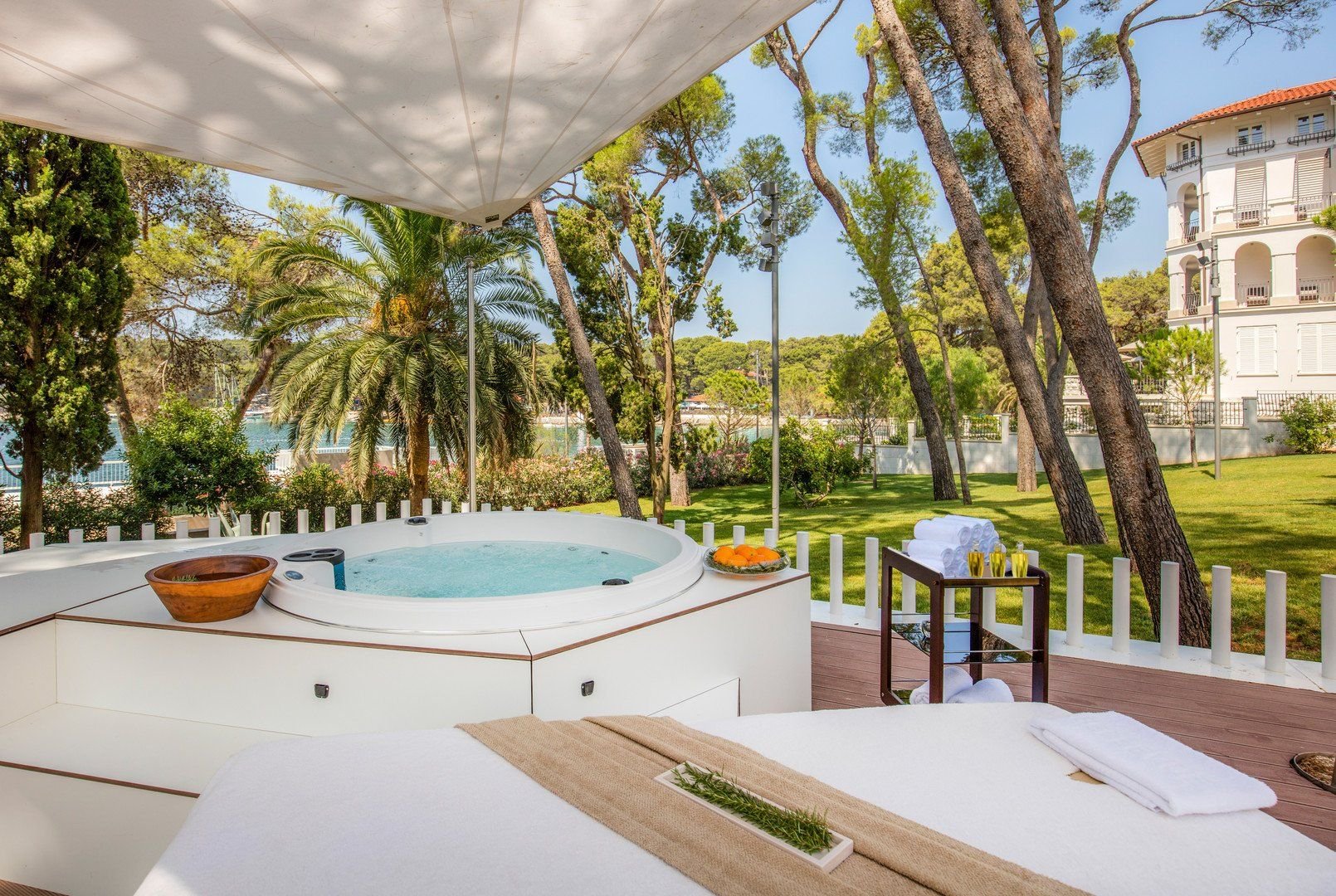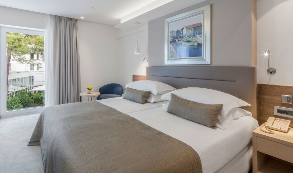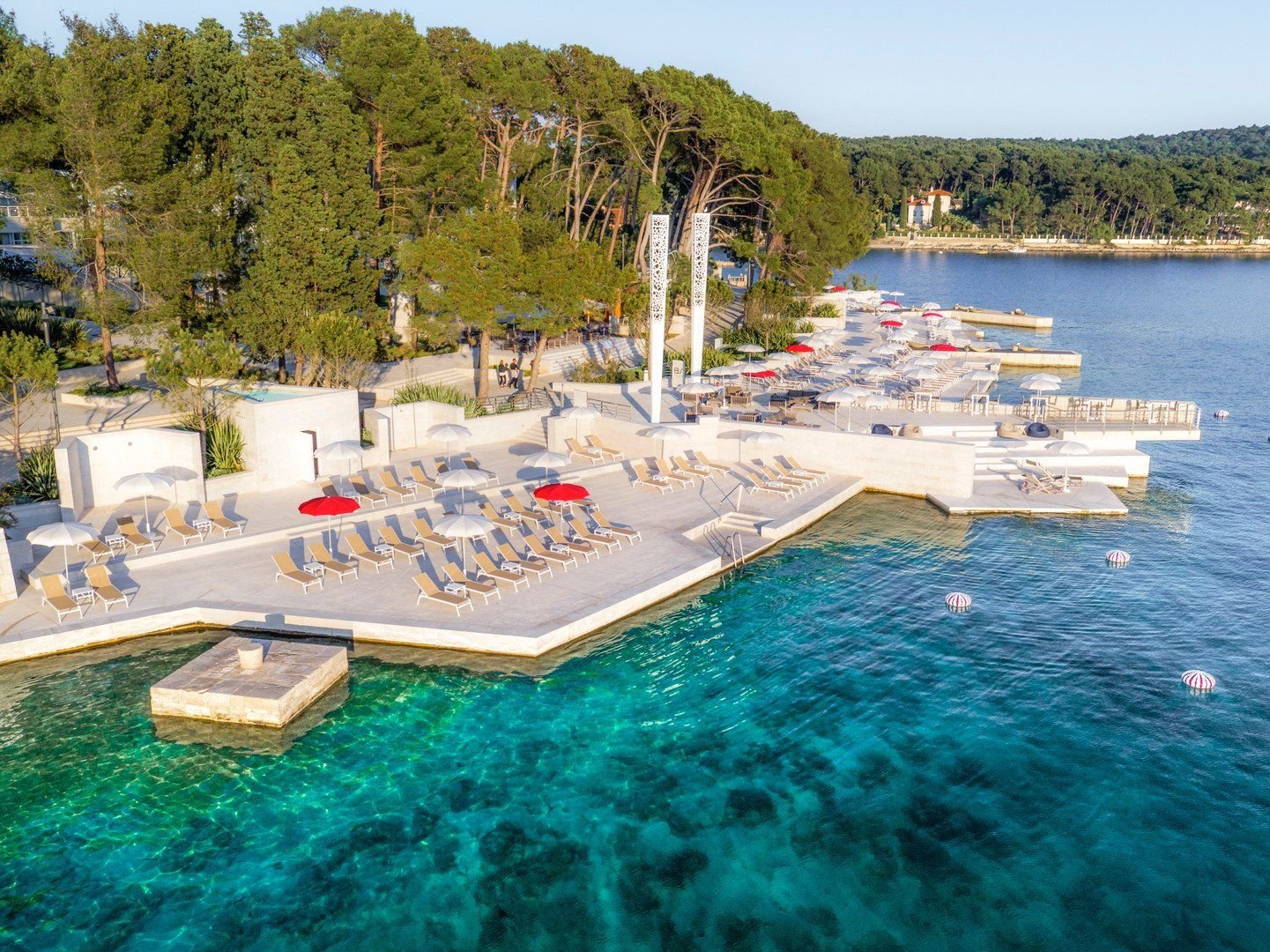 Hotel se nachází uprostřed lesního parku v zátoce Čikat pouze cca 50 m od moře.