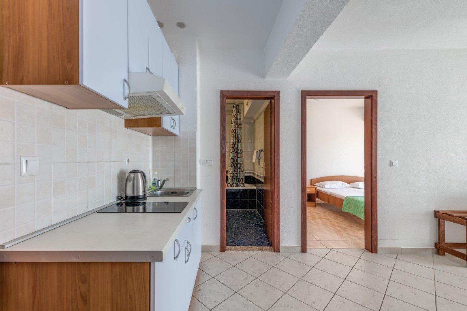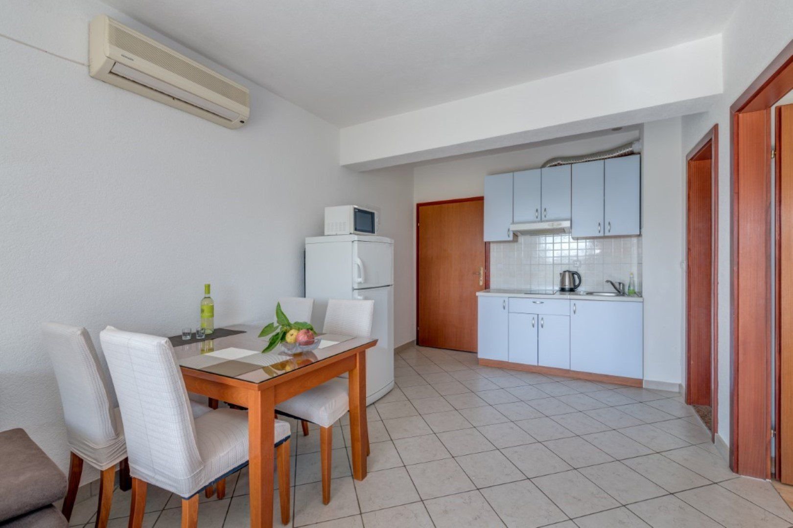 Ubytování je poskytováno v prostorných a moderně zařízených apartmánech.Apartmán A 2+2 - jedna oddělená ložnice s manželským lůžkem, prostorný obývací pokoj s rozkládacím gaučem pro 2 osoby, kuchyňský kout (chladnička, mikrovlnná trouba, rychlovarná konvice), vlastní soc.zařízení (koupelna, WC), klimatizace a balkón.Apartmán A 4+2 - dvě oddělené ložnice (v první manželské lůžko a druhá se dvěma oddělenými lůžky), obývací pokoj s rozkládacím gaučem až pro 2 osoby, kuchyňský kout (chladnička, mikrovlnná trouba, rychlovarná konvice), vlastní soc.zařízení (koupelna WC), klimatizace a balkón.