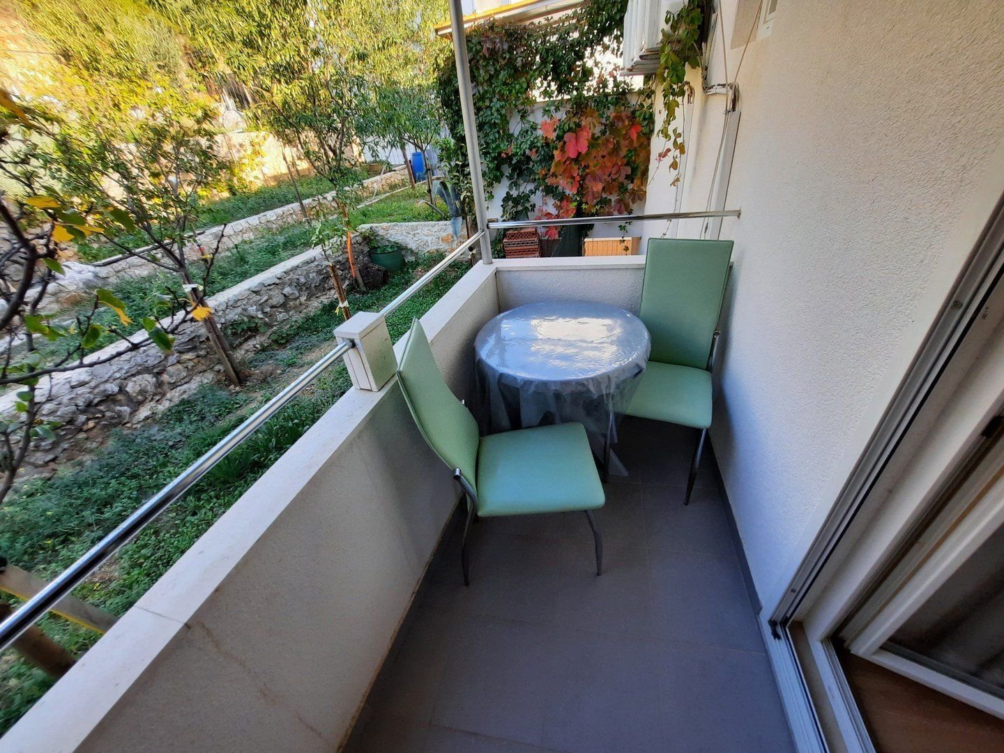 Rodinná vila s celkem 8 apartmány je umístěna téměř na konci slepé uličky, ve svahu cca 350 m od moře a centra Baška Vody. Cesta na pláž vede kolem restaurace Mars, kde je možné dokoupit stravování. Tržnice je od vzdálena cca 200 m od vily.
