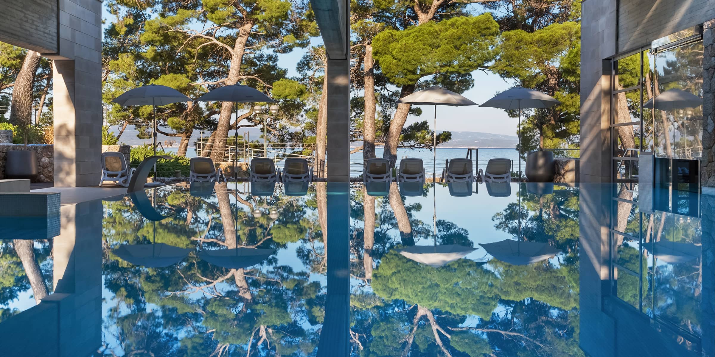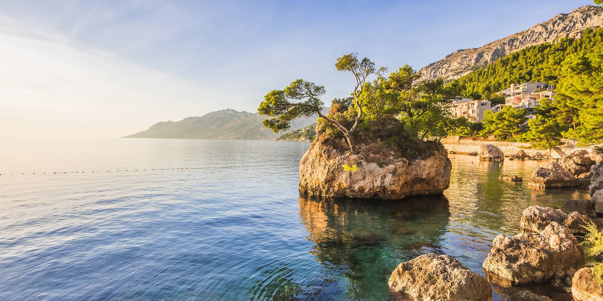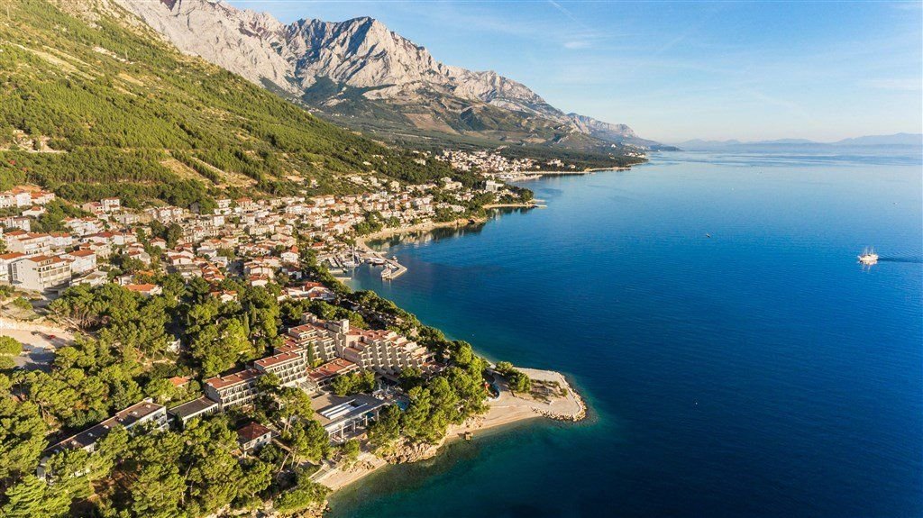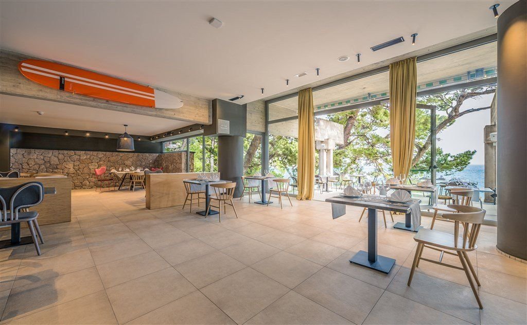 Nádherná pláž s drobnými oblázky a pozvolným vstupem do moře se nachází přímo před hotelem, přístup přes pobřežní promenádu.
