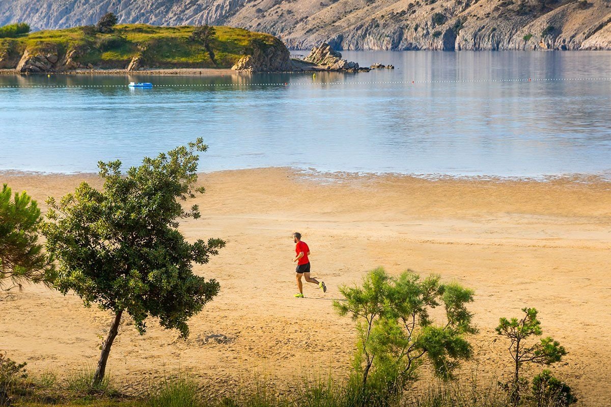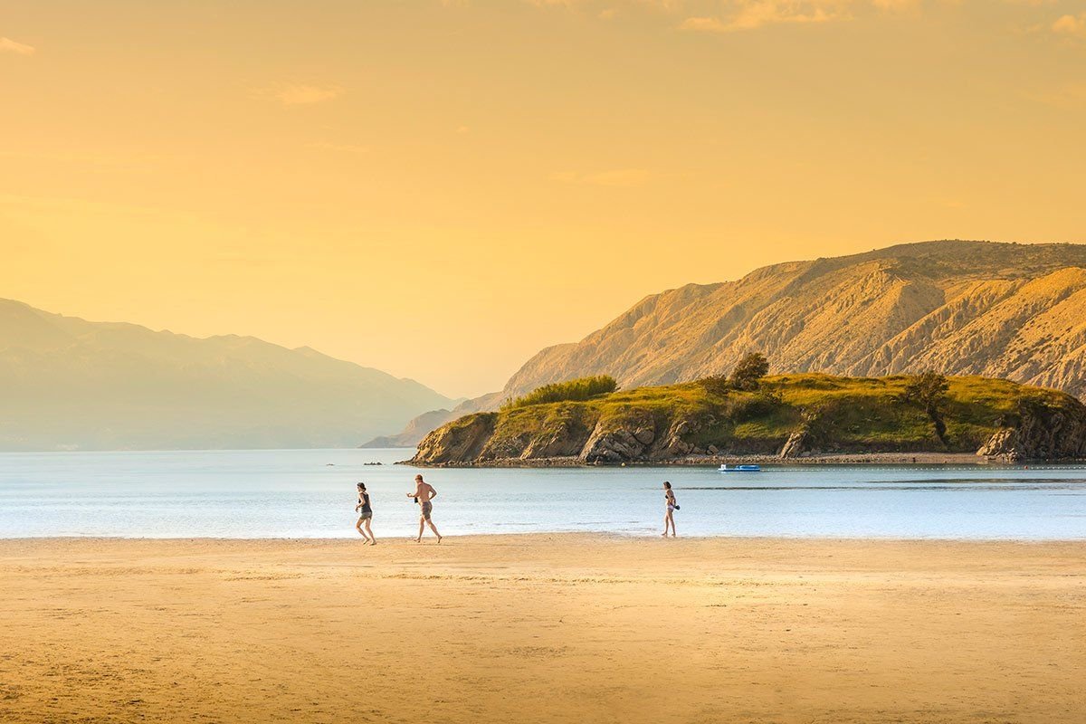 Překrásná, 2 km dlouhá, písčitá pláž se nachází cca 300 m od pavilonů; tobogán, lehátka a slunečníky za poplatek. Moře je velmi mělké i dále od břehu, vhodné pro koupání malých dětí. Další písčité i kamenité pláže, včetně nudistické, ve vzdálenosti 500-2000 m.