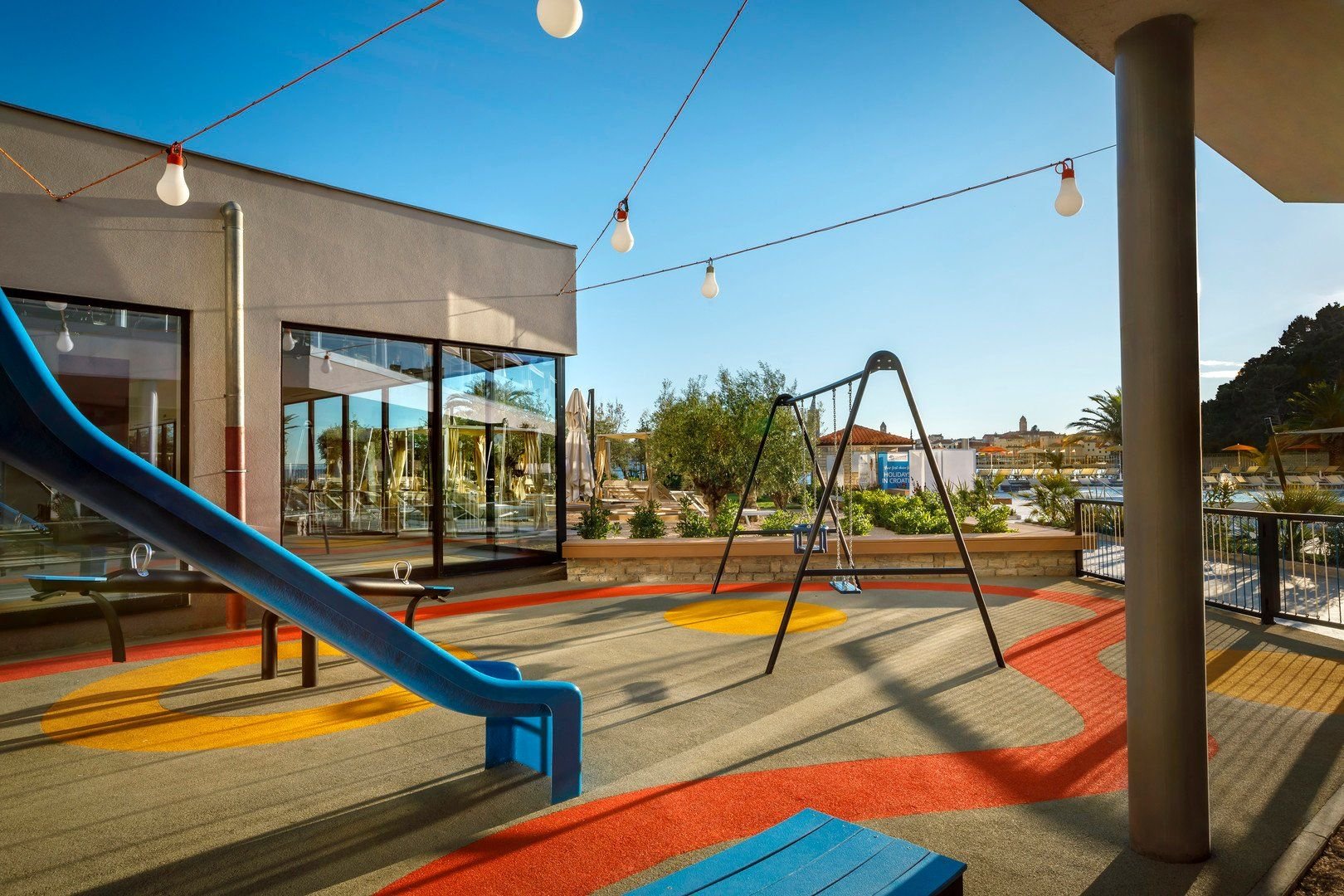 V sezóně živá hudba, taneční a zábavní večery, animace, dětský klub, aerobic. Za poplatek vodní sporty, půjčovna kol, lodní výlety, tenisové kurty v okolí. K dispozici je také fitness centrum, dětské hřiště i dětská herna.Pro děti vyhřívaný sladkovodní bazén s tobogány, pro batolata brouzdaliště.Wellness - nově zrekonstruované - venkovní i vnitřní bazén, beauty centrum, sauny, masáže, solárium.Centrum města Rab je plné historických památek, typické pro město jsou zvonice kostelů. Jednou z výrazných staveb je kostel sv. Kříže. V okolí se také nachází několik cyklotras, které mají zajímavá zastavení.