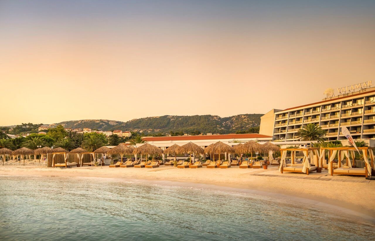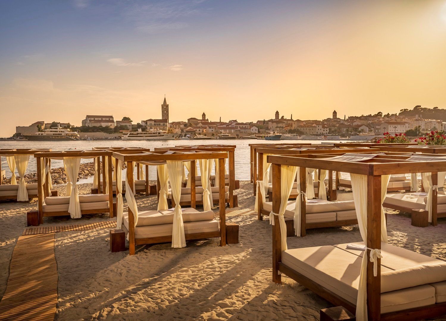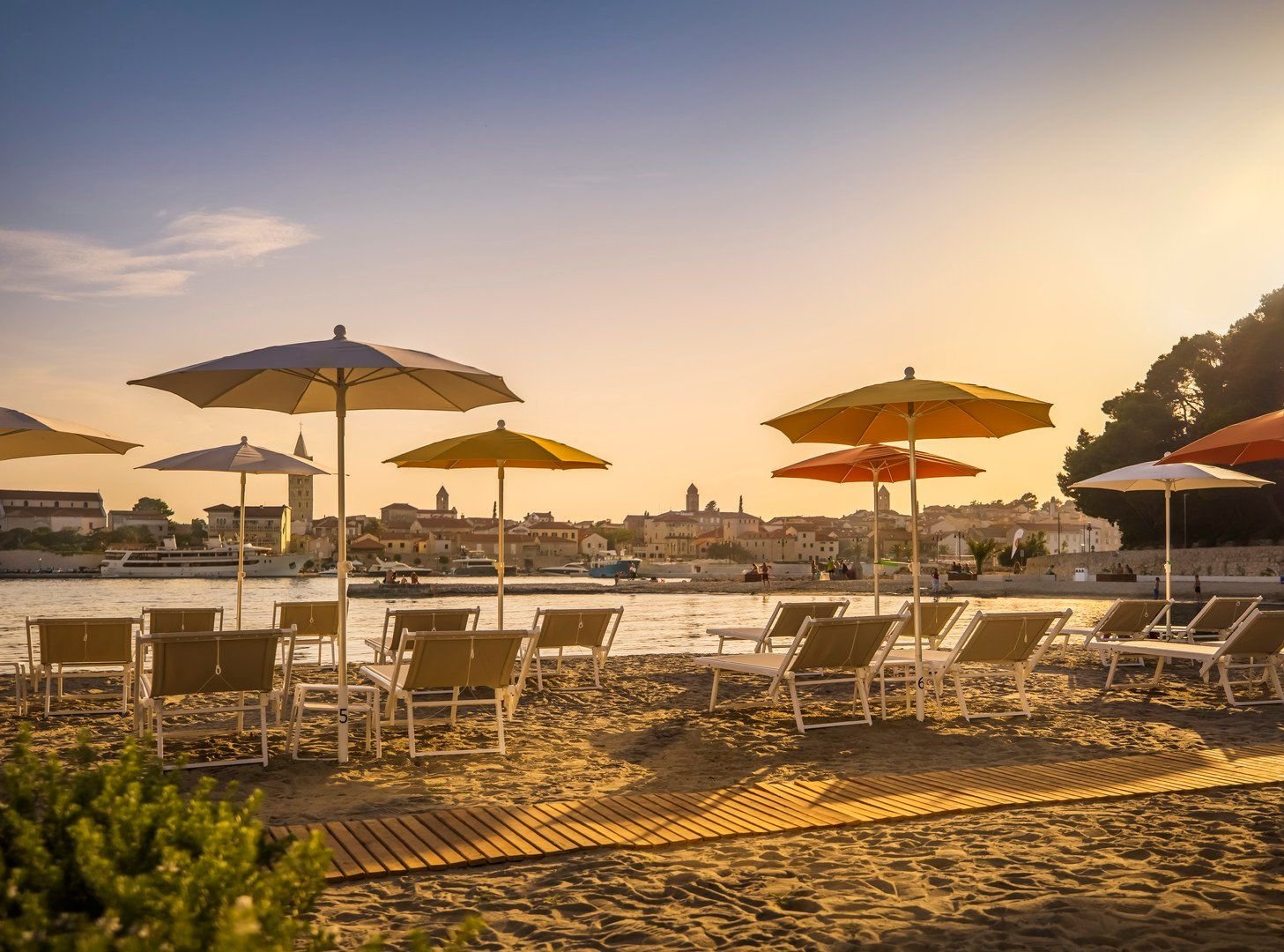 Hotel má vlastní písečnou pláž, ideální pro malé děti.Slunečníky, lehátka a osušky na pláži v ceně.V sezóně zdarma organizovaná doprava lodí na písčité i oblázkové pláže Suha Punta.