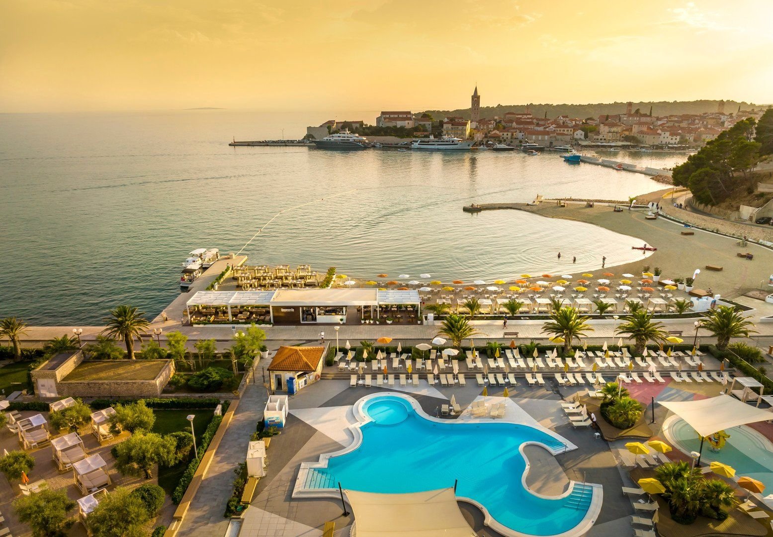 Zrenovovaný hotel má výhodnou polohu přímo u moře s výhledem na starobylé město Rab, které leží cca 800 m od hotelu.