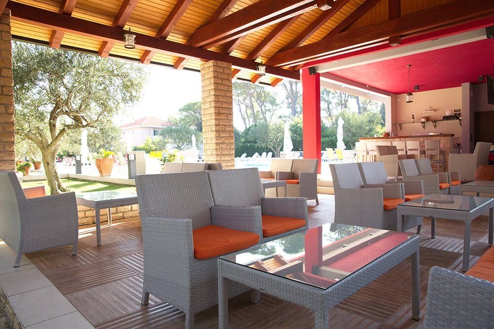 Recepce, bar u bazénu, bufetová restaurace, dětský koutek, půjčovna kol, terasa s bazénem, parkoviště, Wi-Fi připojení.