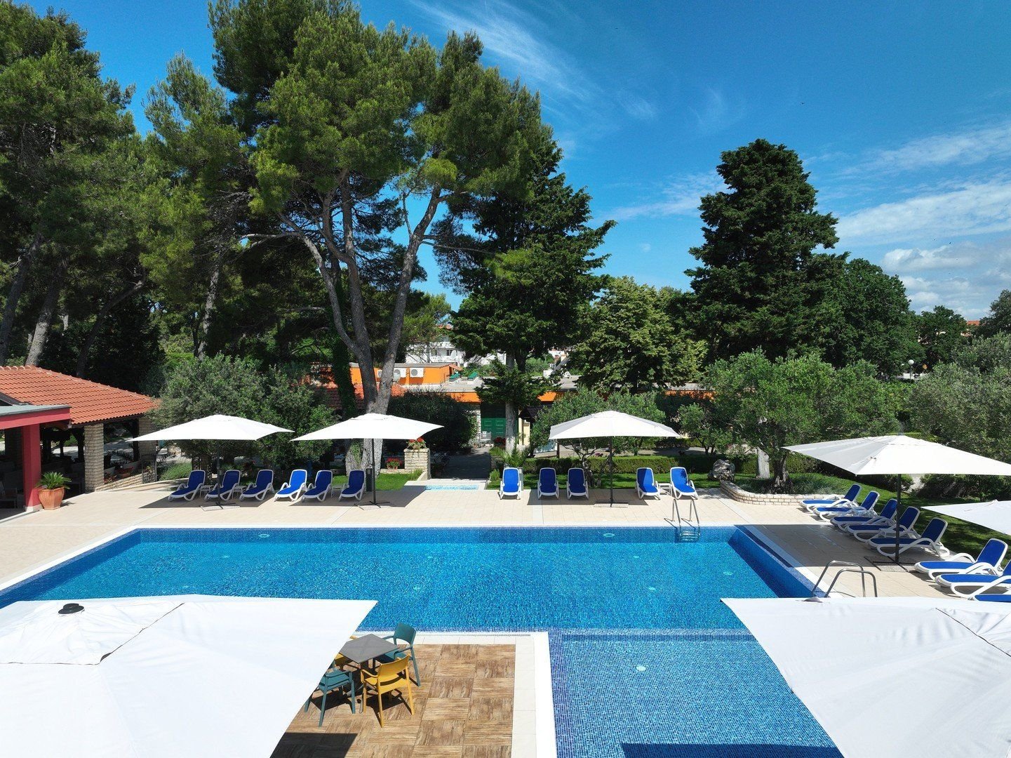 Uzavřený resort s bazénem se nachází v borovicovém lese v klidné části města Biograd na Moru, cca 300 m od pláže.