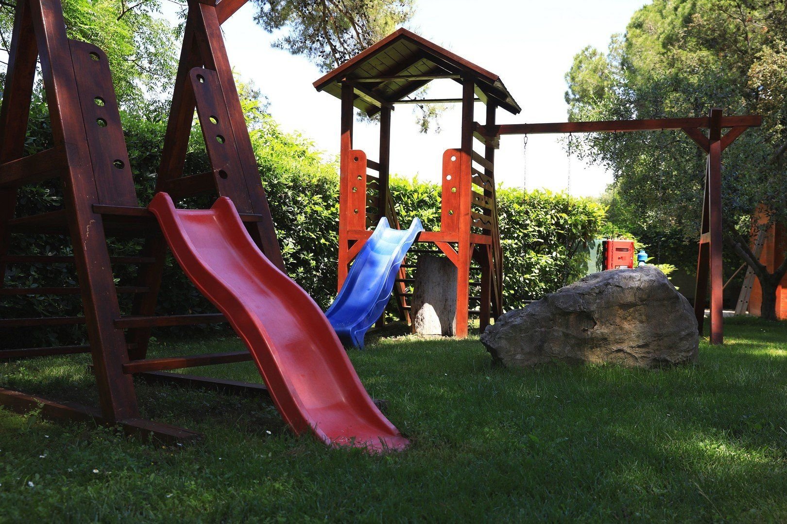 Hlavní oblázková pláž s pozvolným vstupem do moře se nachází cca 300 m, písčitá zátoka Soline cca 400 m a městský bazén se slanou vodou cca 350 m od rezortu.