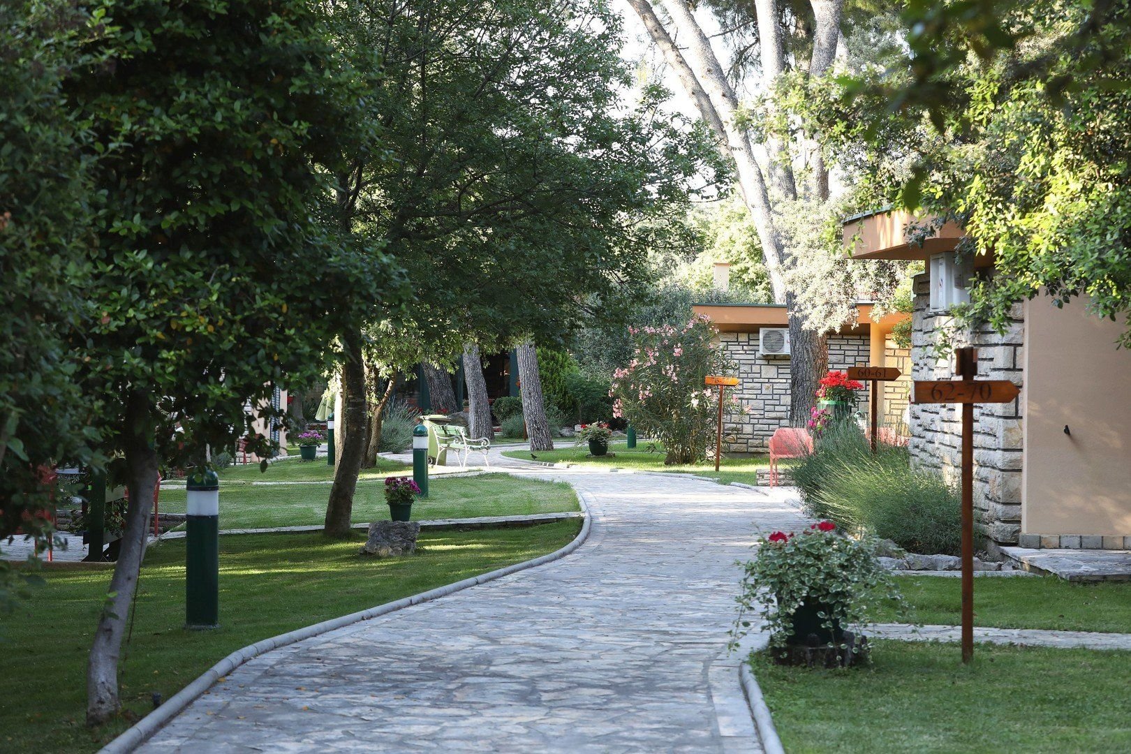 Bungalovy pro 2 os., které jsou vybaveny vlastním soc.zařízením (koupelna, WC), klimatizací, TV, Wi-Fi, telefonem a terasou s posezením; za poplatek minibar.