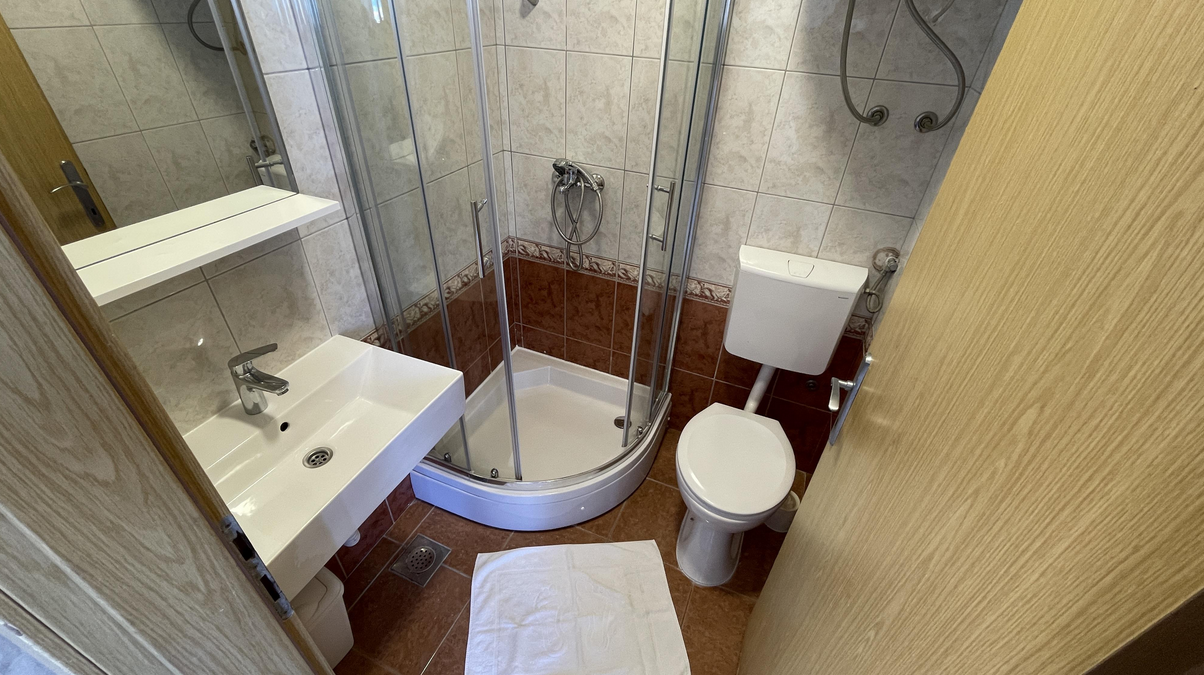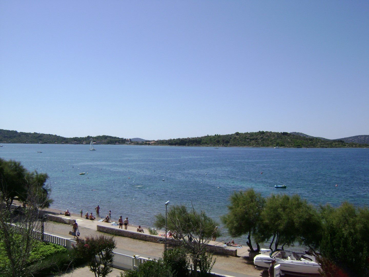Kamenitá pláž se nachází 30 metrů od apartmánů.