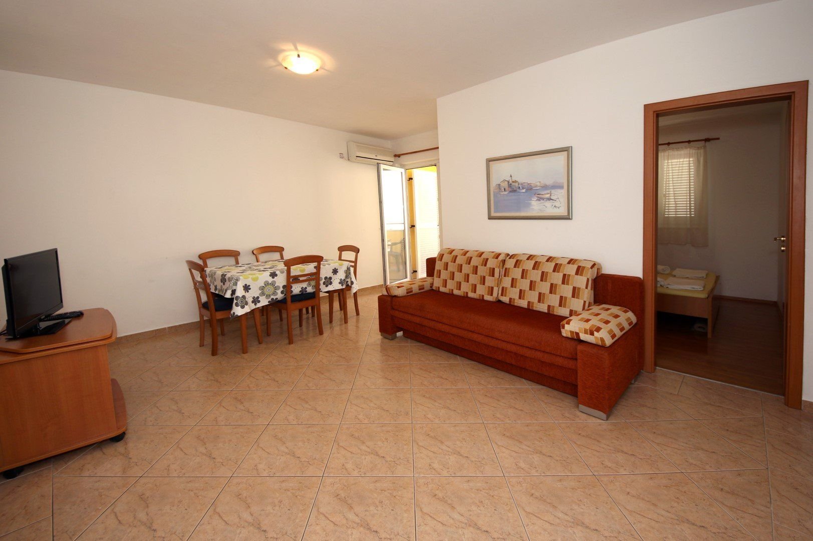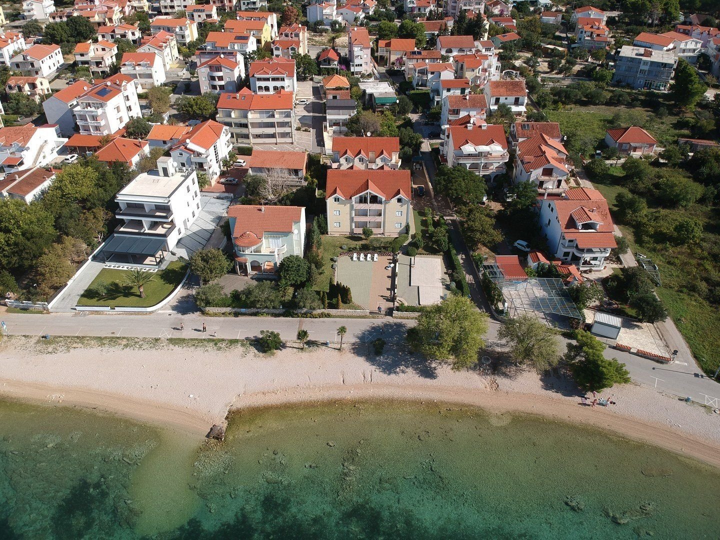 Komplex dvou propojených budov s vynikající polohou přímo u pláže se nachází v poklidném středisku Srima, cca 2 km od letoviska Vodice; supermarket a pekárna cca 250 m od apartmánů.