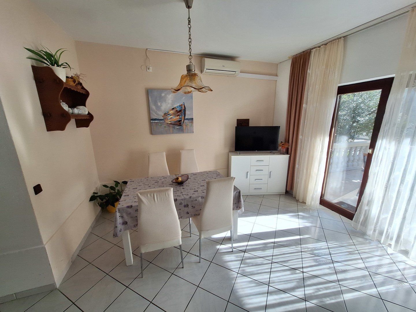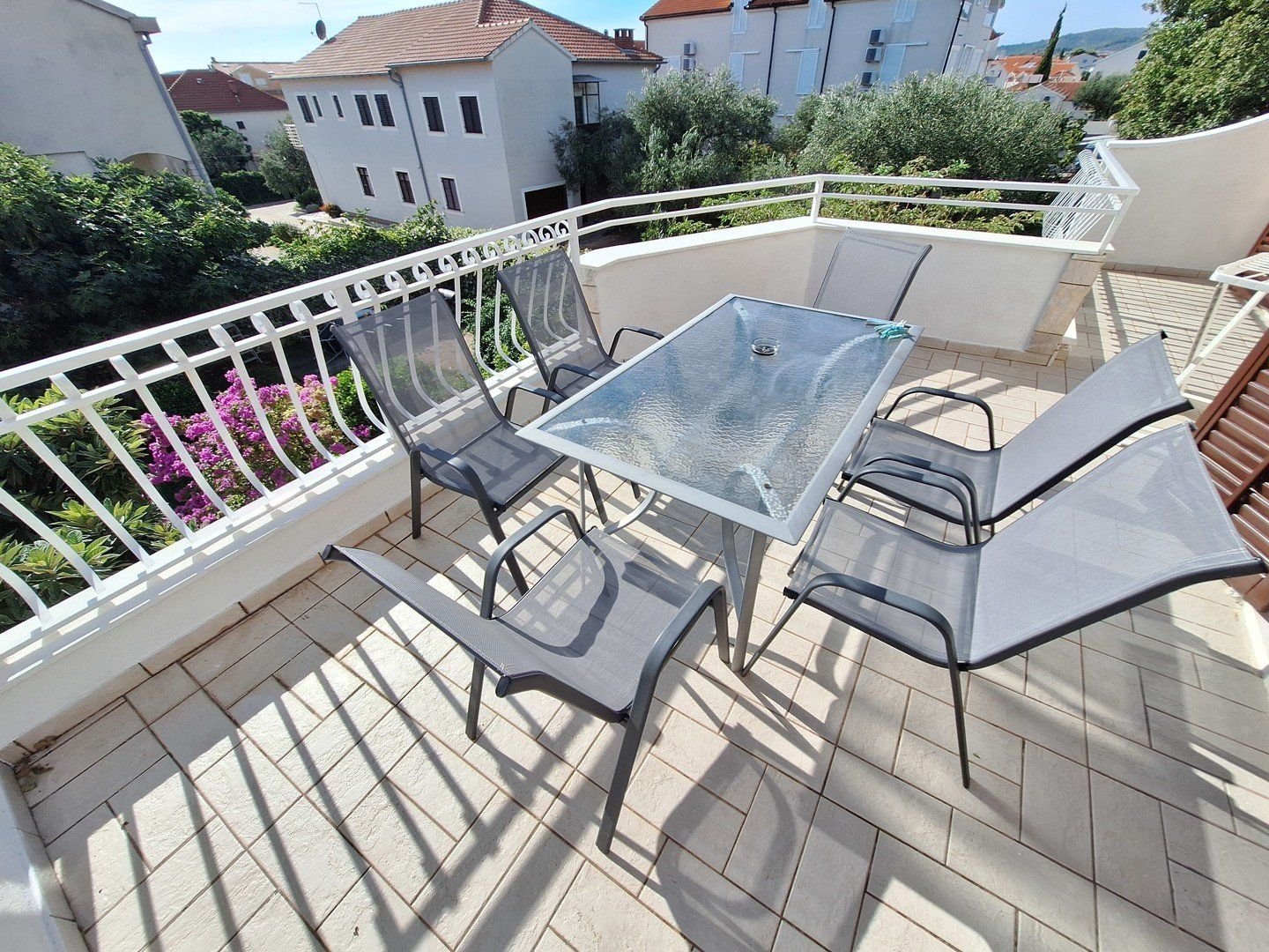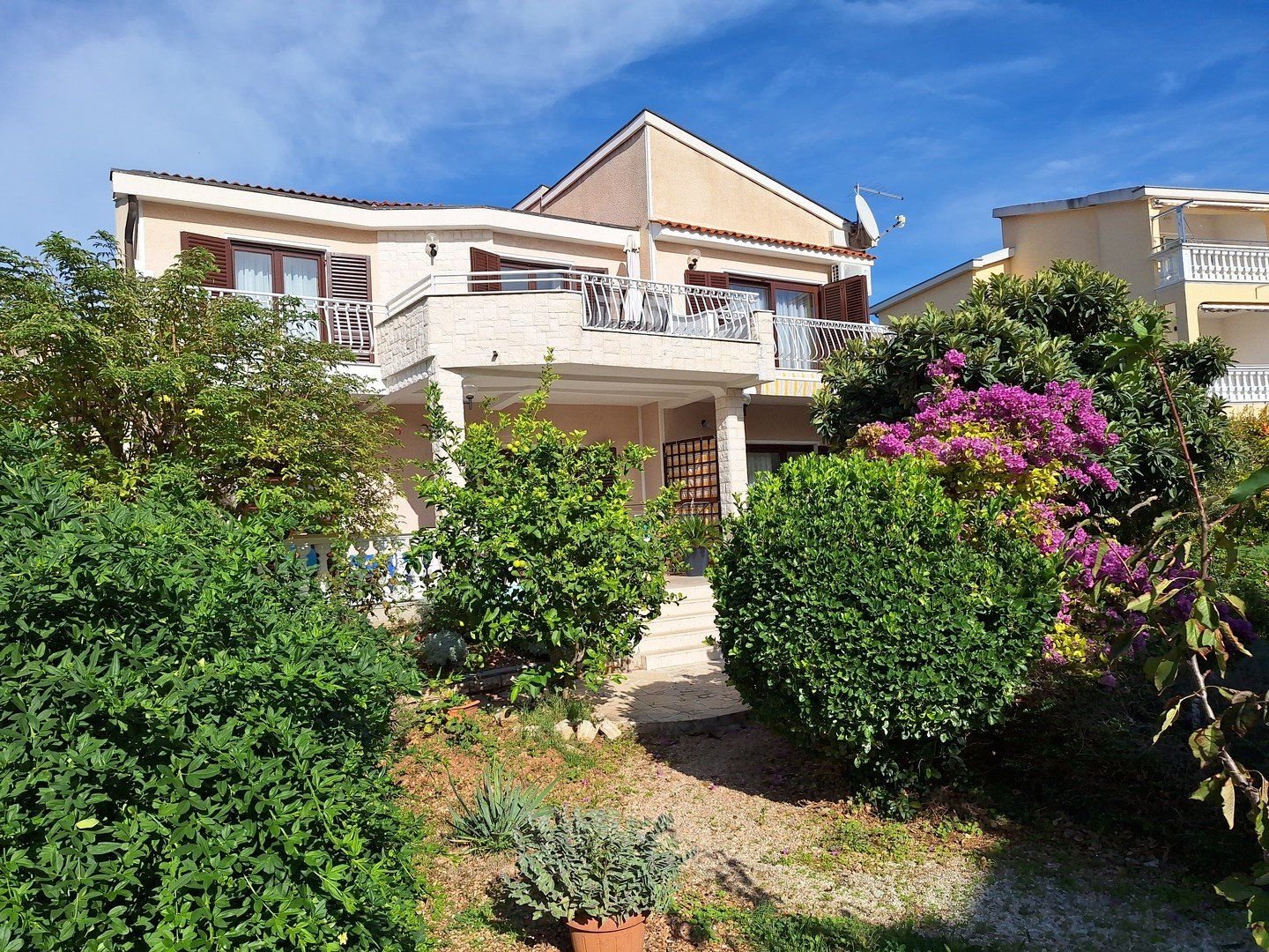 Villa Boral se nachází na konci klidné slepé uličky 150 m od pláže a hlavní promenády, kde je řada restaurací a stánků. Živé centrum Vodic je vzdáleno 2 km po pobřežní promenádě a pohodlně se tam lze dostat i turistickým vláčkem.Supermarket s pekárnou je vzdálen 250 m od apartmánů.