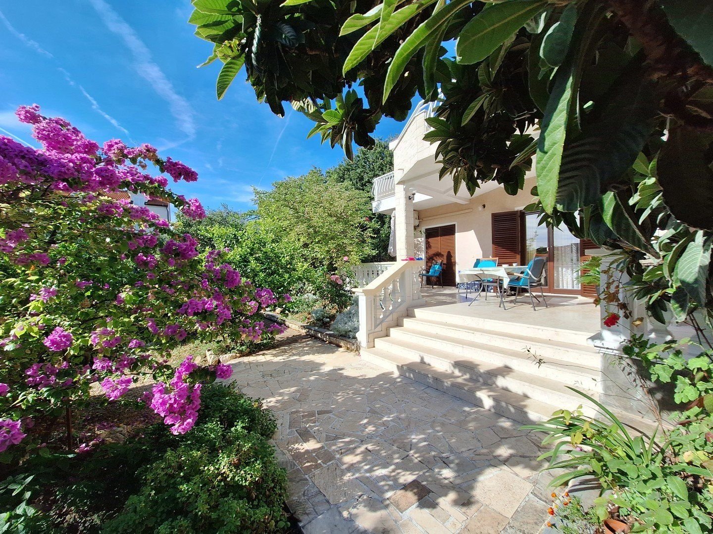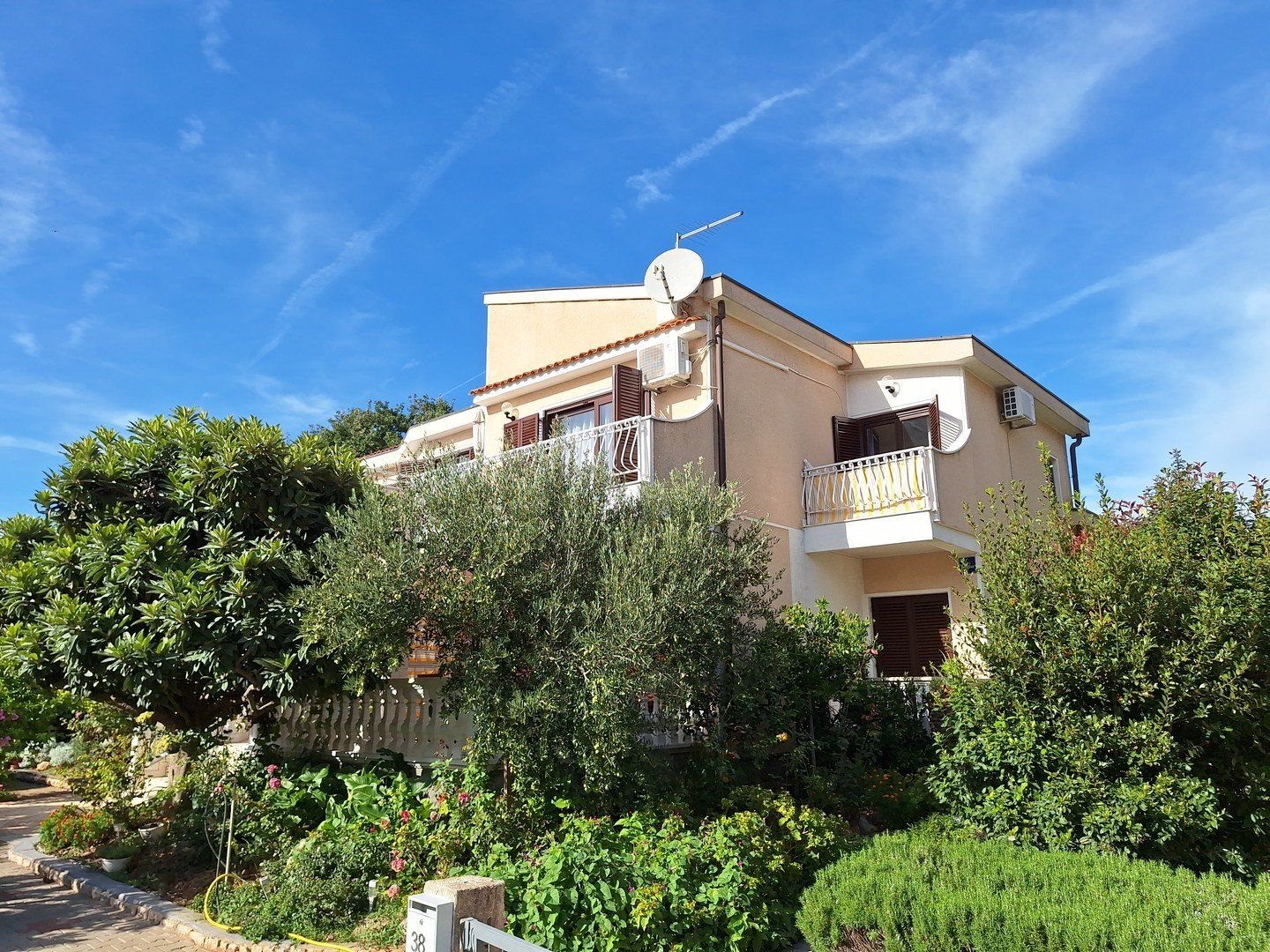 Oblázkové pláže se nacházejí přibližně 150 m od villy a mají pozvolný vstup do moře. Půjčovna lehátek na pláži.