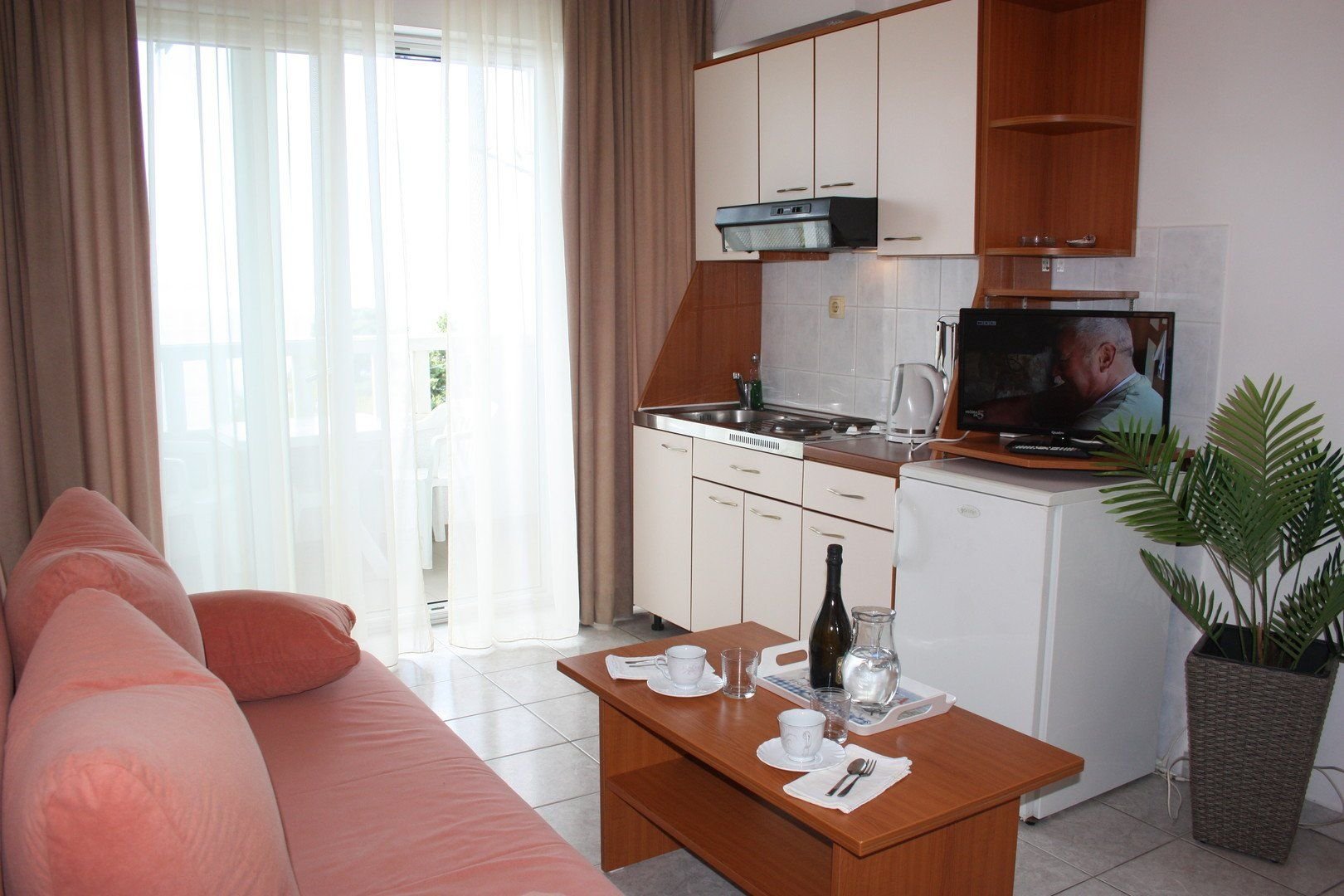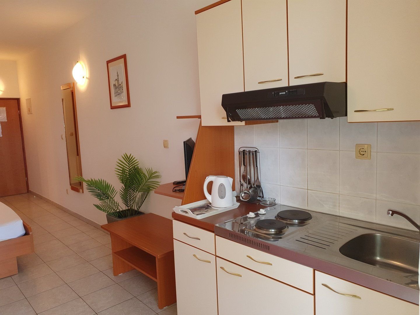 Studio se skládá z jedné místnosti se 2 lůžky a s přistýlkou pro 1 osobu. Apartmán se skládá z 2lůžkové ložnice a denní místnosti s rozkládacím gaučem pro 2 osoby. Všechny pokoje mají klimatizaci a jsou vybavené kuchyňským koutem, vlastním soc.zařízením (sprcha, WC), TV/Sat., Wi-Fi a balkonem.