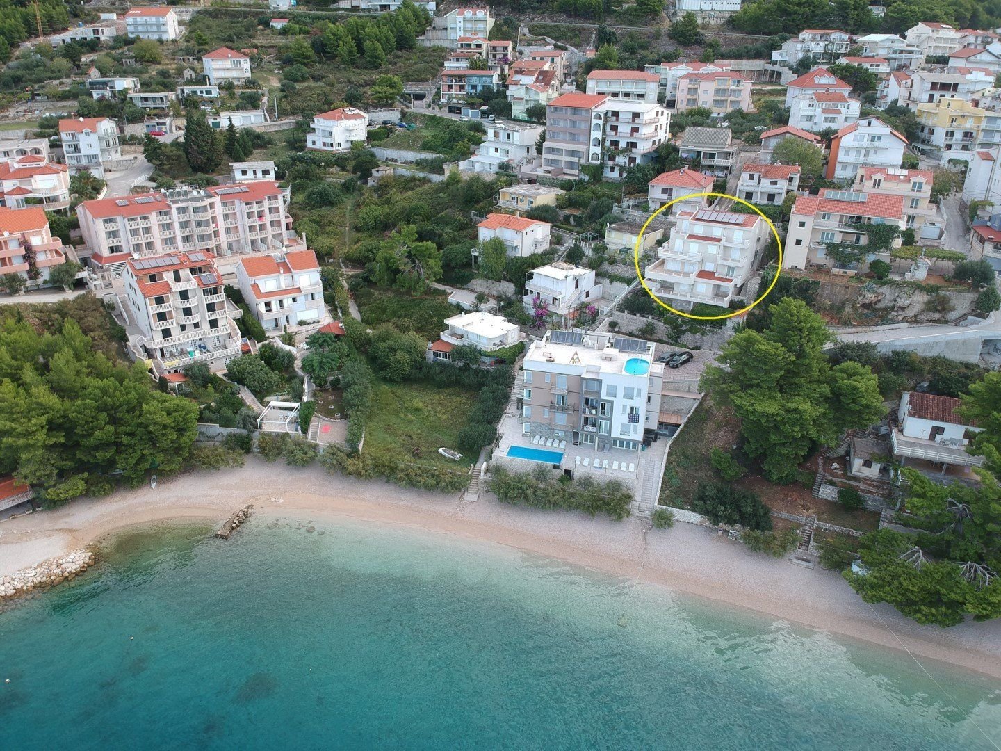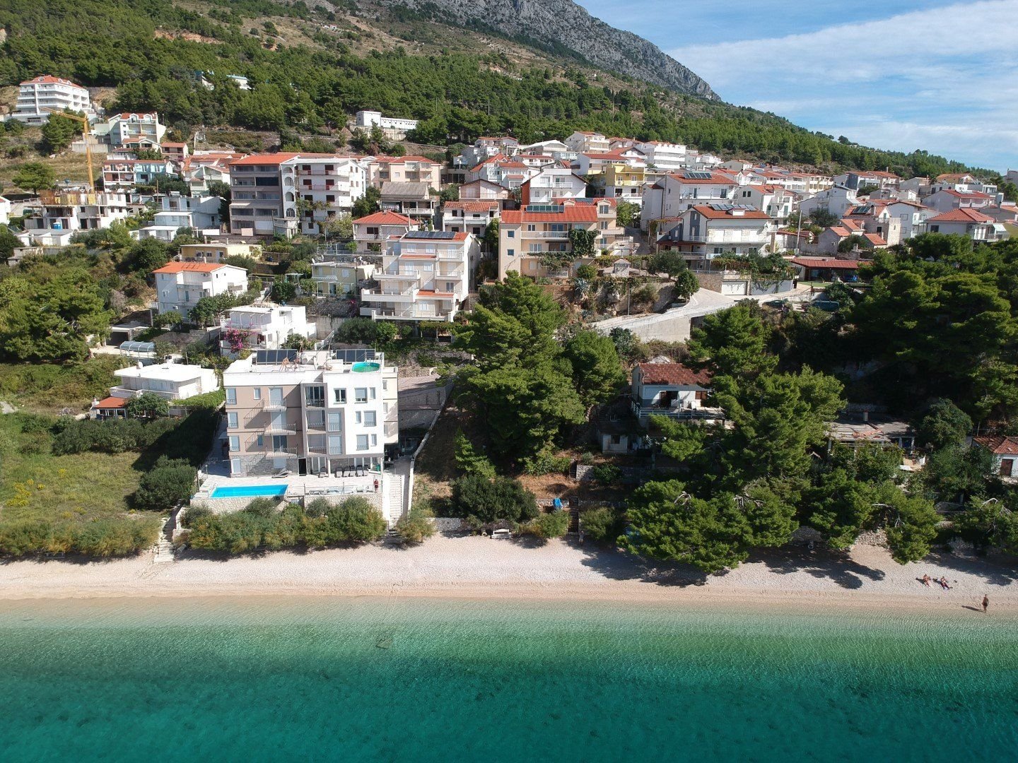 Luxusní apartmánová vila se nachází přímo nad krásnou pláží s jemnými oblázky. Všechny apartmány jsou orientované směrem k moři. Vila je přístupná autem s možností parkování kousek od domu (zdarma) nebo v garáži u domu (za poplatek). Výstup i nástup klientů s bus dopravou probíhá na magistrále, odkud je zajištěn svoz zavazadel a klienti sejdou pěšky cca 500 metrů z magistrály.
