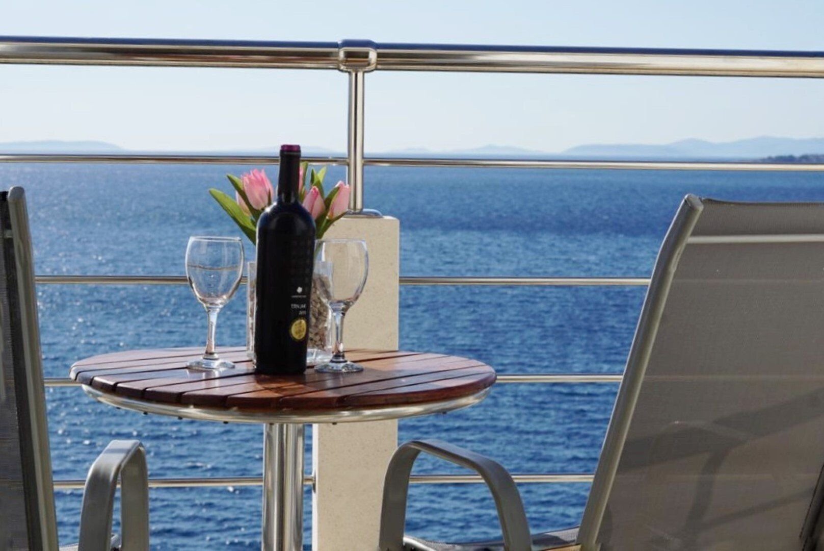 Apartmány pro 2+2 osoby – každý apartmán se skládá z oddělené ložnice s manželským lůžkem a z prostorného obývacího pokoje s pohodlným rozkládacím gaučem pro 2 osoby. Ke standardnímu vybavení každého apartmánu patří: SAT/TV, klimatizace (používání zahrnuto v ceně), Wi-Fi nebo LAN připojení na každém apartmánu, balkón s posezením, koupelna se sprchou a WC, kompletně vybavená kuchyňka s chladničkou a rychlovarnou konvicí.
