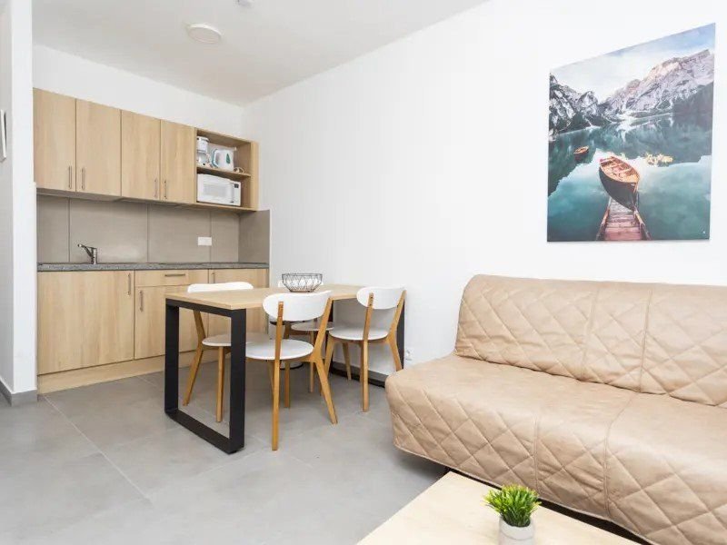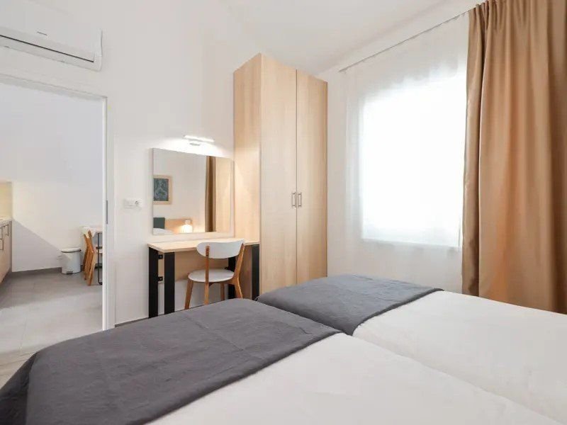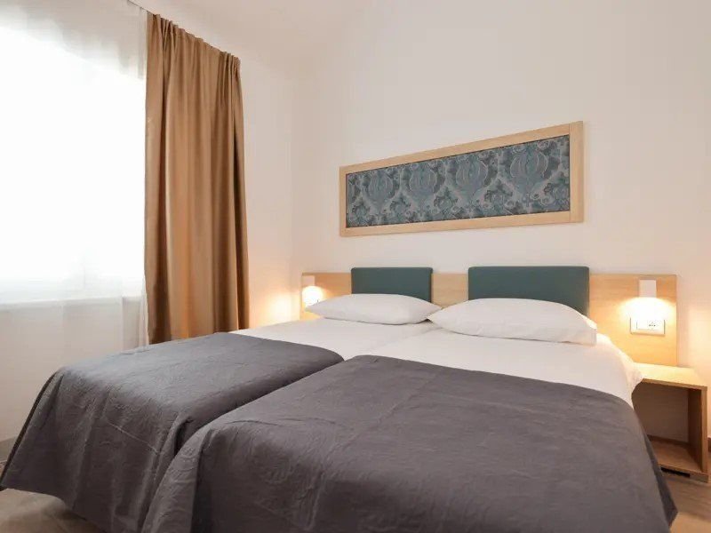 Apartmán 1/4 Superior**** 1 ložnice se 2 lůžky a přistýlkou (vhodnou pro jednu dospělou osobu nebo dvě děti do 12 let) Apartmány jsou po renovaci a nově zařízenéApartmán 1/5 Superior****: 2 ložnice, každá se 2 lůžky, obývací místnost s kuchyňskou linkou a dalším lůžkem vhodným pro dítě do 12 let. Všechny apartmány mají vlastní příslušenství (koupelna, WC), klimatizaci, kuchyňku, malou lednici a mrazák, TV/sat., základní nádobí, ložní a koupelnové prádlo.