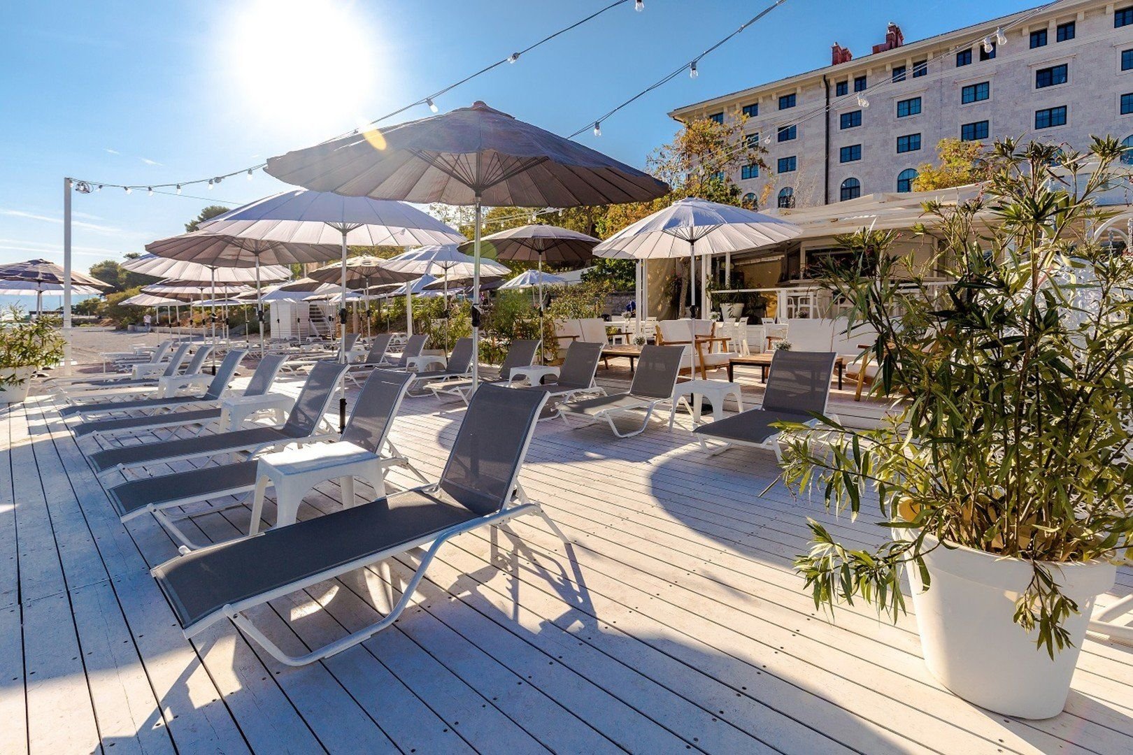 Nejbližší menší písečno-oblázková pláž se nachází přímo před hotelem.