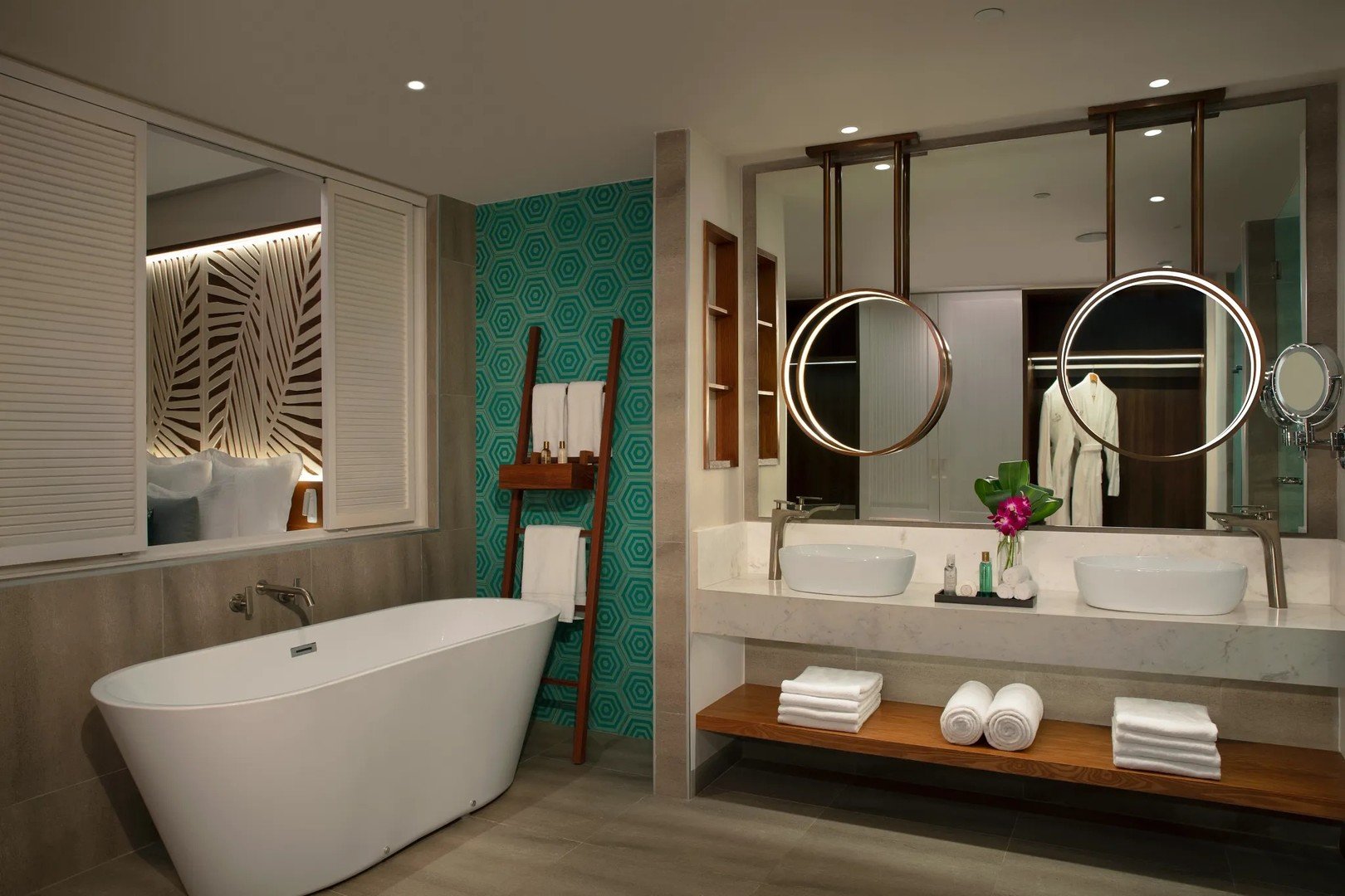 Pokoj Junior Suite s výhledem do zahradypokoje jsou vybaveny vlastní koupelnou (vana/sprcha, WC, fén), klimatizací, ventilátorem, minibarem, trezorem, Wi-Fi připojením, TV, setem pro přípravu kávy nebo čaje, balkonem/terasou.Za příplatek k dispozici:Pokoj Junior Suite s výhledem na bazén nebo na oceán