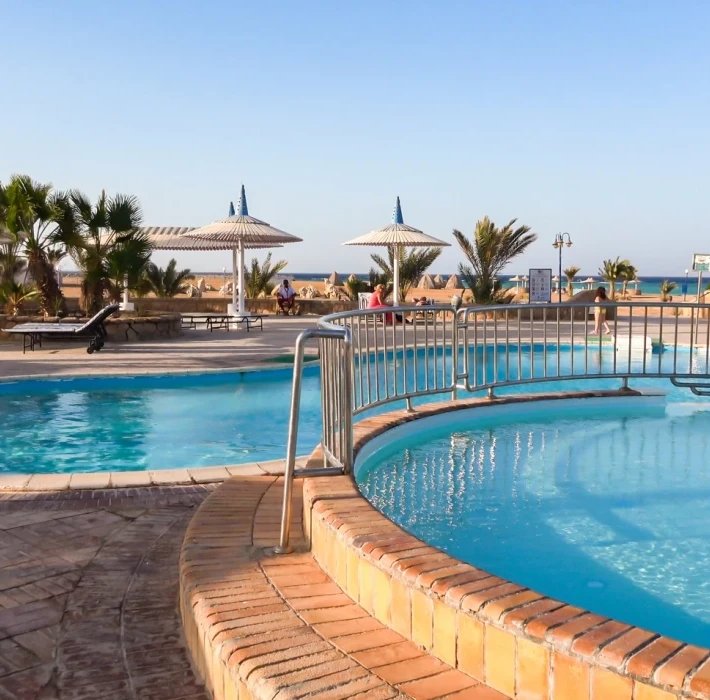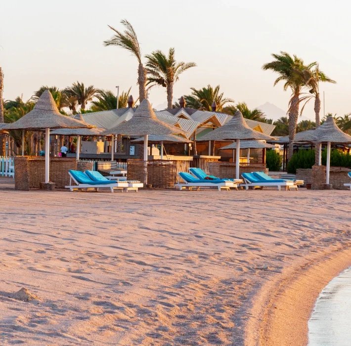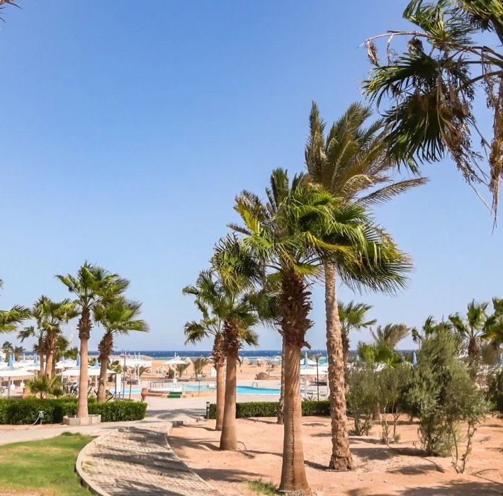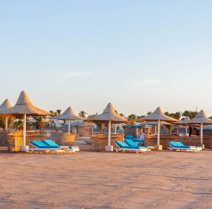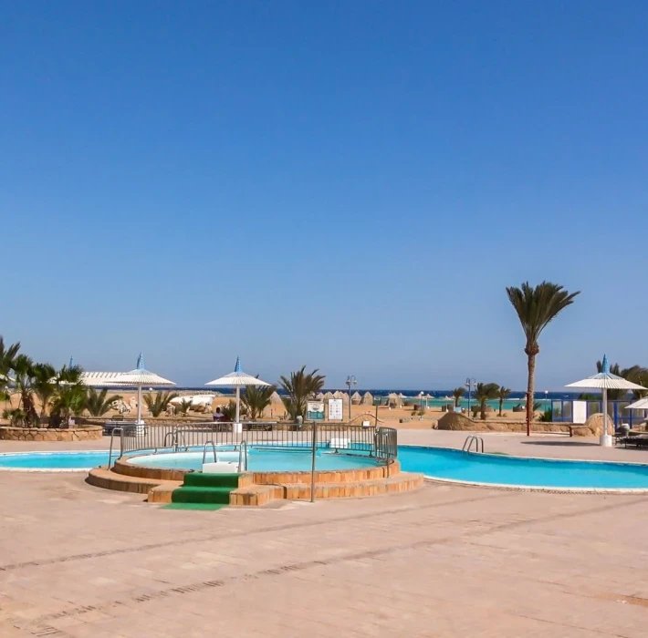Pěkný rozlehlý hotelový komplex přízemních vilek se nachází v klidnějším prostředí přímo u dlouhé pláže s krásnými korály, cca 15 km od centra Hurghady s obchody, restauracemi a kavárnami (hotelový bus za poplatek) a cca 20 km od letiště.