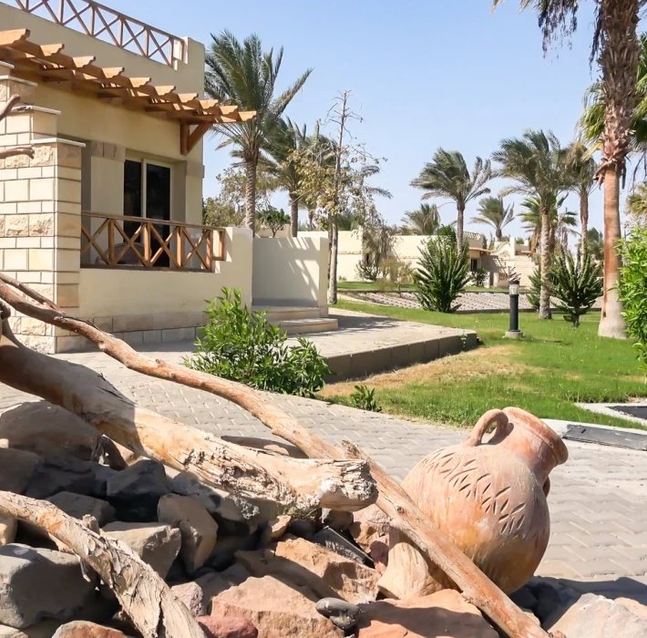 Rozlehlý čtyřhvězdičkový hotelový komplex skládající se z přízemních vilek nabízí ideální atmosféru pro páry i skvělé zázemí pro rodiny s dětmi. Hotel disponuje rozsáhlou pláží s krásnými korály a s oddělenou částí pro naturisty (nudistickou pláží) - ideální pro ty, kdo preferují soukromí a komfort při opalování a koupání. Hotel jako jeden z mála hotelů v Egyptě, který umožnuje i ubytování se psem.