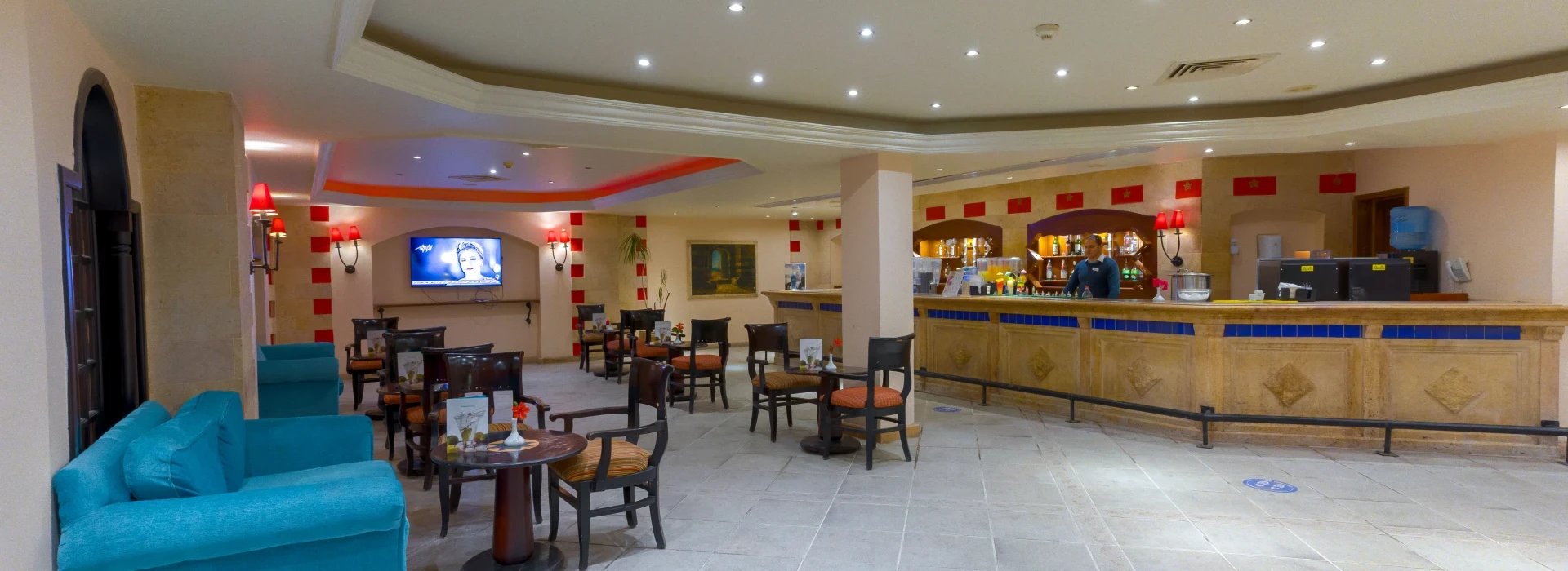 Vstupní hala, recepce, hlavní restaurace, bar v lobby, u bazénu a na pláži, obchod se suvenýry; WiFi zdarma v lobby. Terasa se 2 bazény, dětský bazén; lehátka, slunečníky a osušky zdarma.