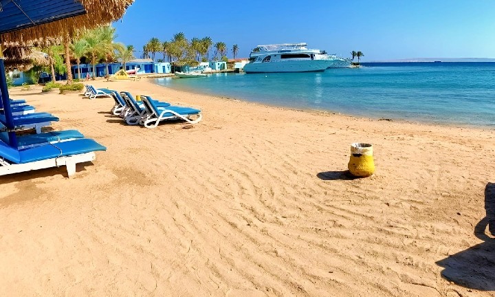Přímo u hotelu písčitá pláž s pozvolným vstupem do moře; slunečníky, lehátka a osušky na pláži zdarma.