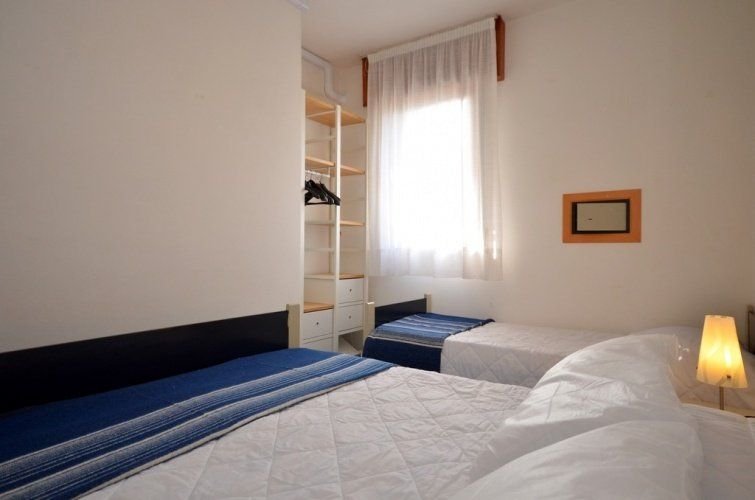 Apartmánová budova v klidné části letoviska Bibione Lido dei Pini, jen pár kroků od pláže (od pláže jí dělí jen parkoviště).