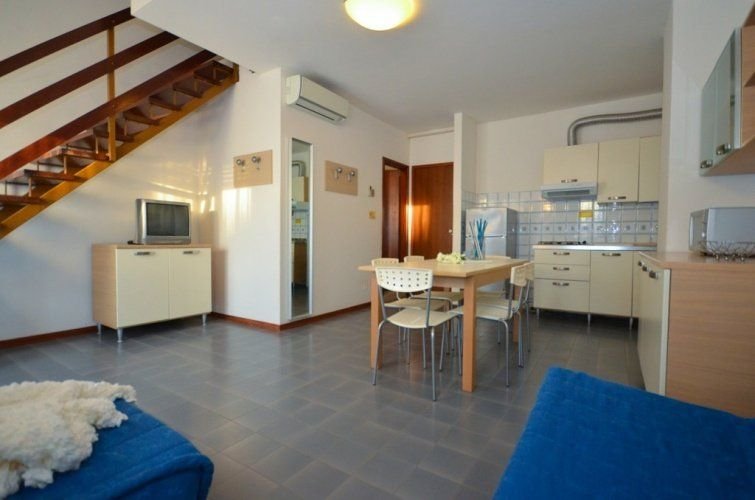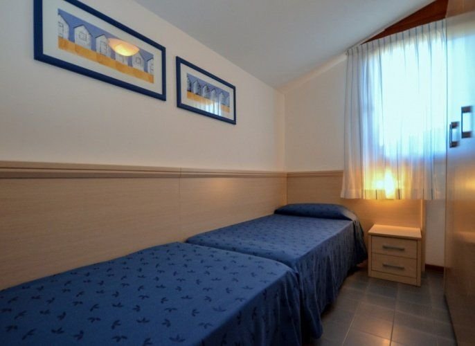 Všechny apartmány jsou vybaveny TV, trezorem, mikrovlnkou, kávovarem, klimatizací.Mono pro 2/3 osoby: obývací pokoj s kuchyňským koutem a 2 rozkládacími pohovkami, koupelna, balkon. Bilo pro 2/5 osob: obývací pokoj s kuchyňským koutem a rozkládací pohovkou, ložnice s manželským lůžkem a lůžkem, koupelna, balkon. Trilo pro 4/7 osob (mezonetové): obývací pokoj s kuchyňským koutem a 2 rozkládacími pohovkami, ložnice, pokoj se 2 lůžky nebo palandou, 2 koupelny, balkon.