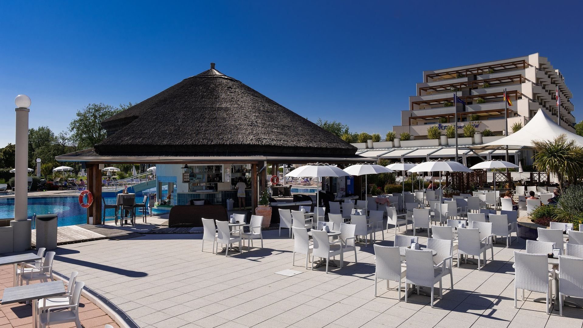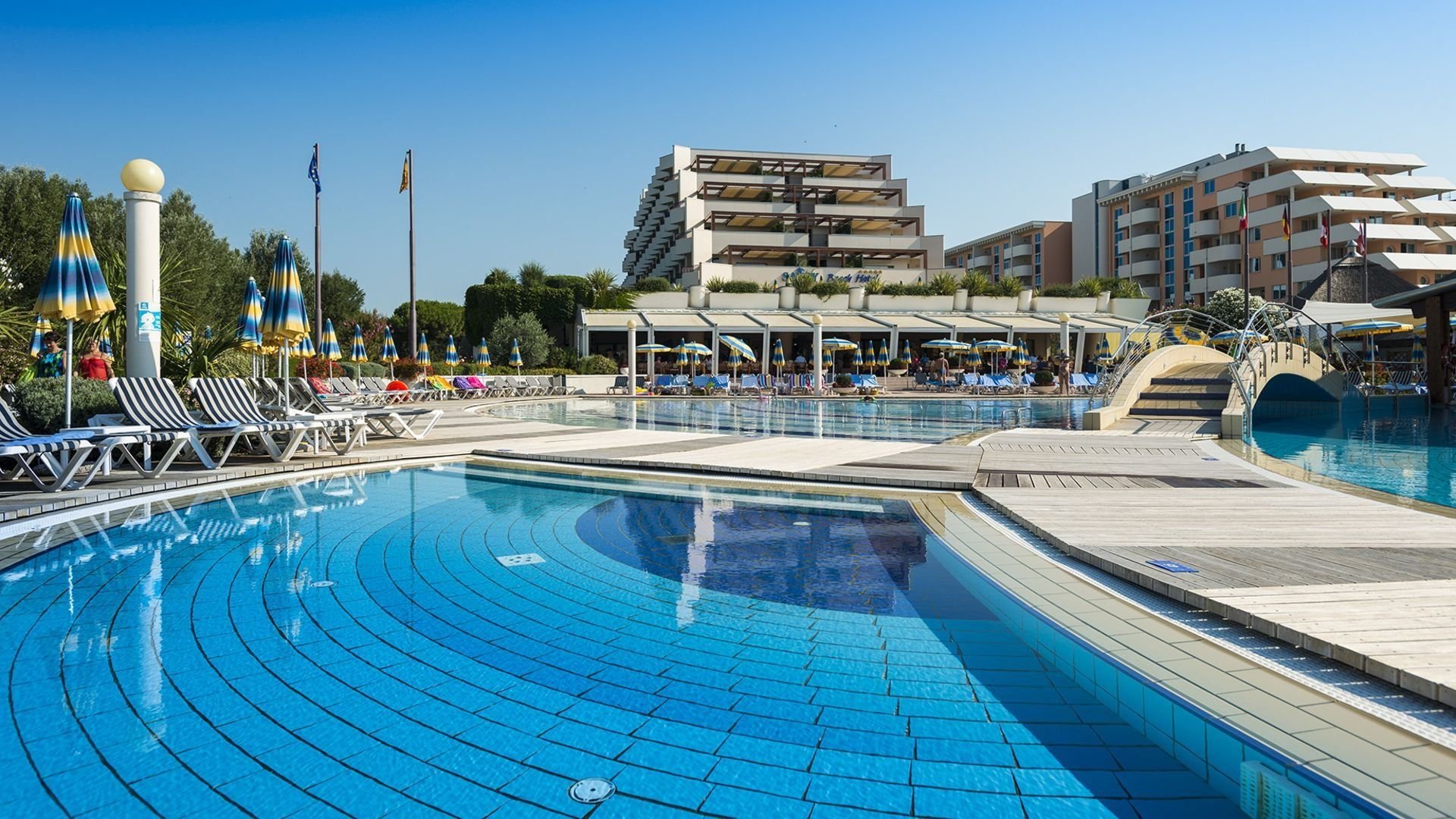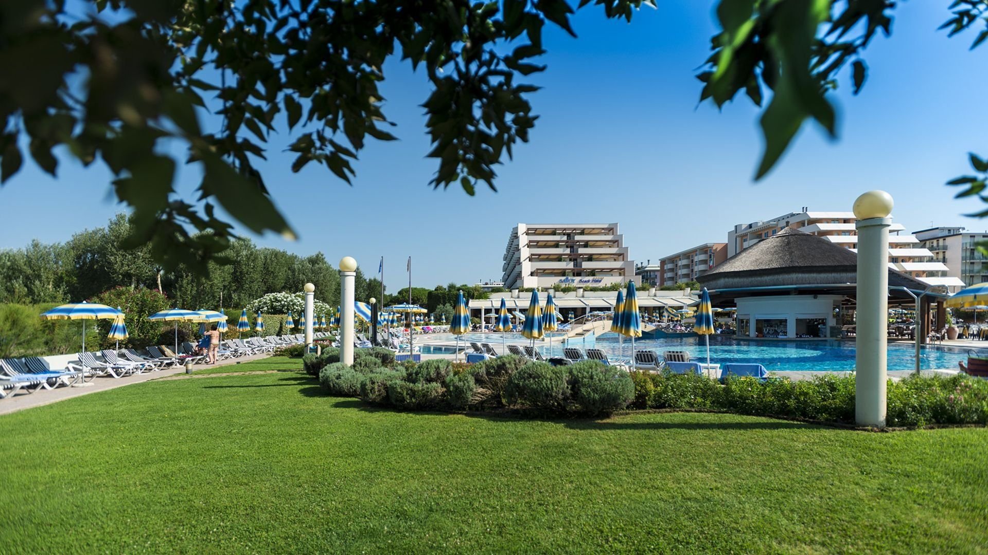 velký venkovní bazén s dětskou částí, vířivka, opalovací terasa, posilovna, mini club, junior club, dětské hřiště, půjčovna jízdních kol, sportoviště, animační programy pro děti i dospělé, sportovní aktivity (aerobik, vodní gymnastika, vodní pólo), vodní sporty na pláži, kulečník.Resort je propojen s termálním a relaxačním kompexem Bibione Thermae (venkovní vyhřívaný bazén, sauna, masáže, solná jeskyně, vířivka, turecké lázně, tělové zábaly, kosmetické ošetření, manikůra, pedikůra, solárium atd.)