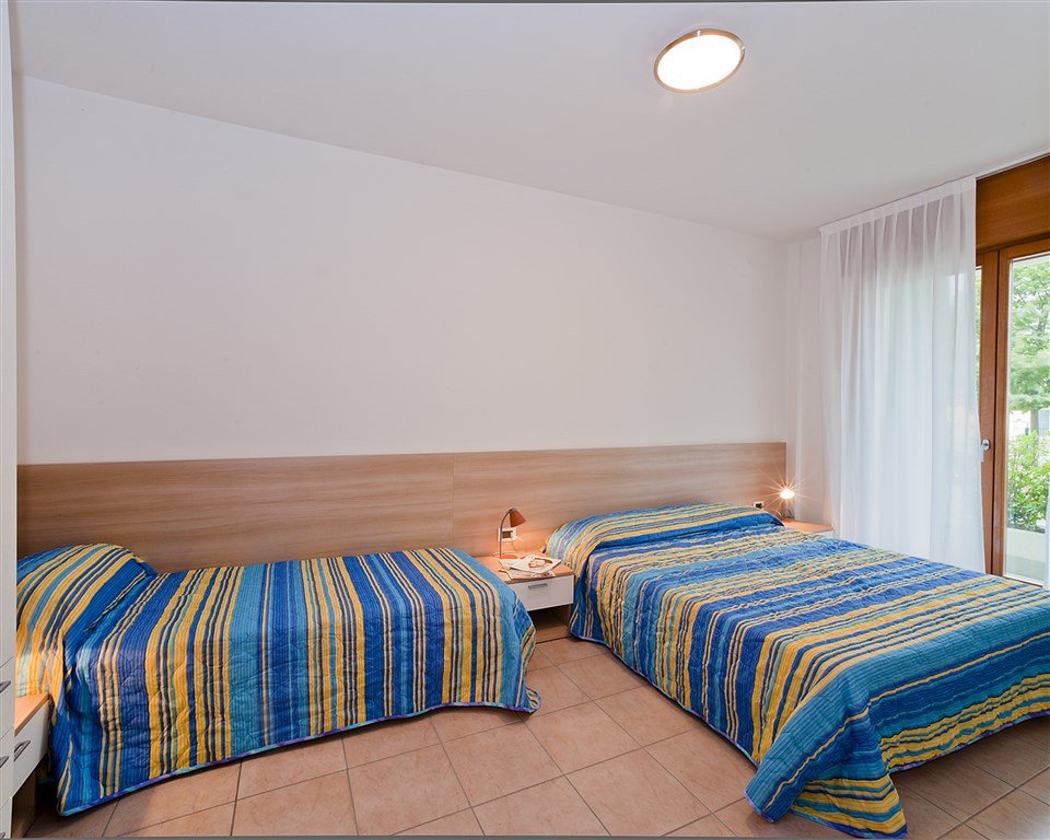 Všechny apartmány jsou komfortně zařízeny a vybaveny TV, trezorem, klimatizací a pračkou.Bilo Standard pro 5 osob: obývací pokoj s kuchyňským koutem a rozkládací pohovkou, ložnice se 3 lůžky, koupelna, balkon.Bilo Comfort pro 5 osob: stejné jako Bilo Standard, pouze orientované směrem k bazénu.Bilo Family pro 5 osob: stejné jako Bilo Standard pouze v přízemí s předzahrádkou a nebo v podkroví s terasou.