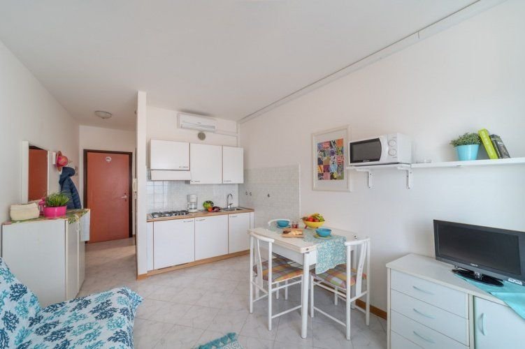 Všechny apartmány jsou vybaveny TV, mikrovlnkou a klimatizací.Mono A pro 3 osoby: obývací pokoj s kuchyňským koutem, rozkládací pohovkou a rozkládacím lůžkem, koupelna, balkon.Bilo B pro 5 osob: obývací pokoj s kuchyňským koutem a rozkládací pohovkou a případně 1 lůžkem, ložnice se 2/3 lůžky, koupelna, balkon.