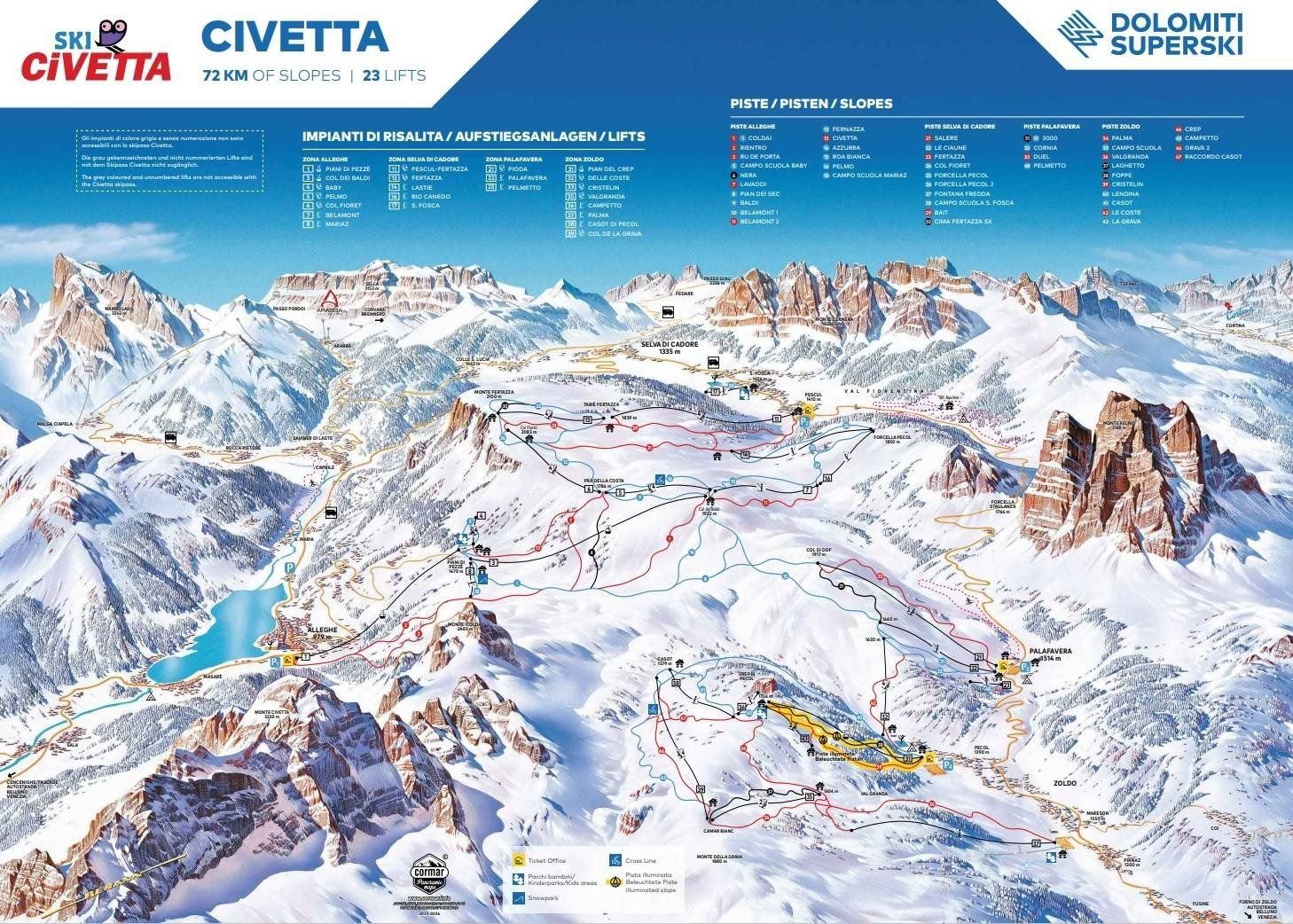 Apartmány Thule se nachází 1,5 km od lanovek Pescul-Fortezza (Civetta-Alleghe ski areál), 15 km daleko je potom Marmolada ski areál spojená s Sella Ronda Carousel. Jezdí zde bezplatný skibus do Civetta-Pescul.