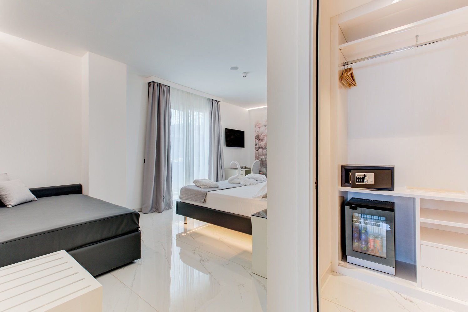 Pokoje Superior- ubytování pro 2 až 4 osoby- balkon, boční výhled na moře- klimatizace, Wi-fi, trezor, minibar, TV, telefon, fén