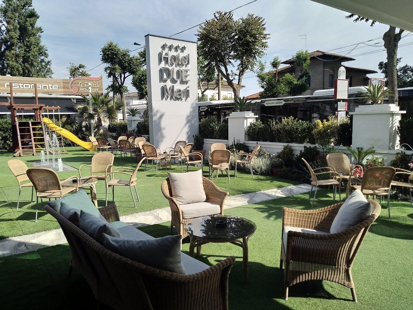 Písečná pláž s pozvolným vstupem do moře přímo před hotelem.V tarifu Polopenze+ a Plná penze+ je plážový servis (1 slunečník + 2 lehátka) ceně (od 17.5. do 12.9.)