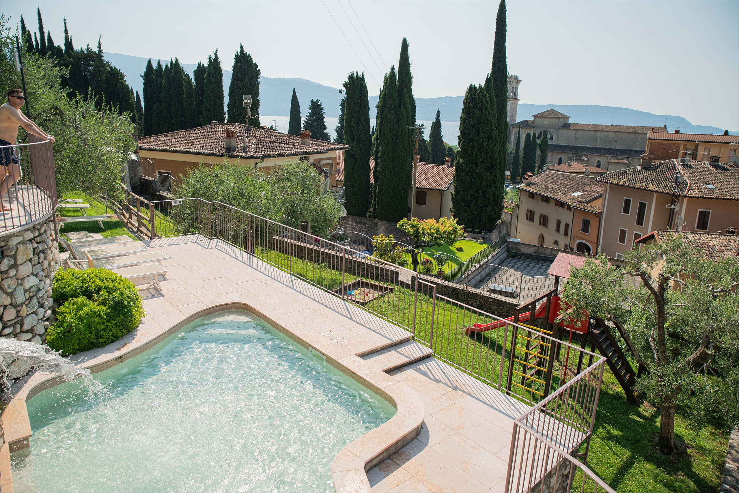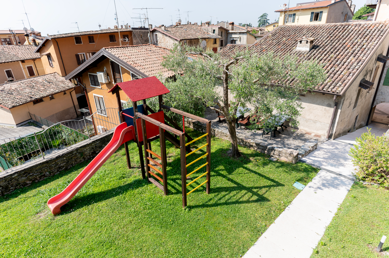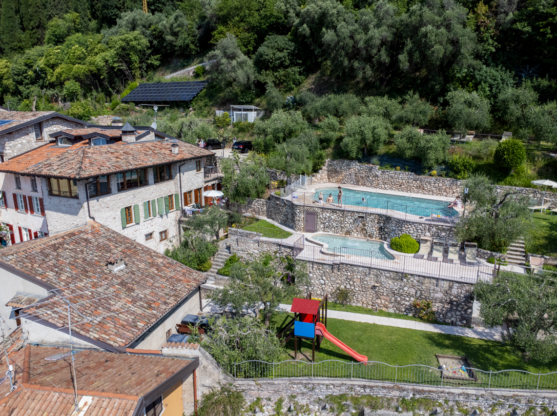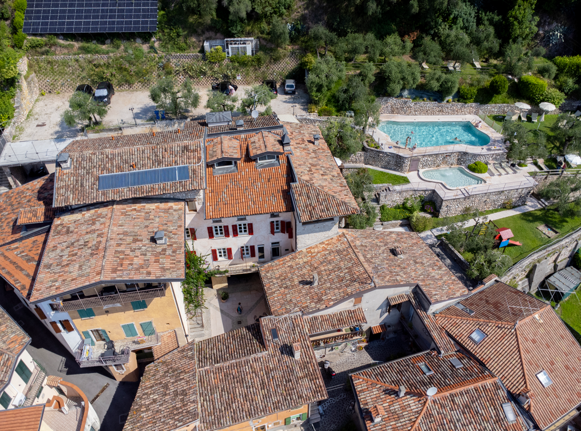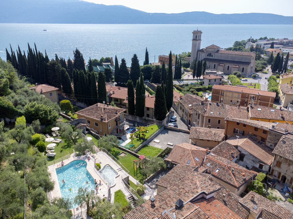 Borgo Alba Chiara je historické ubytování na západním břehu jezera Garda v italském městě Toscolano Maderno, vzniklé citlivou rekonstrukcí středověké budovy ze 16. století. Nabízí 18 originálně zařízených apartmánů vybavených klimatizací, Wi-Fi a plně vybavenou kuchyní. Mezi jeho služby patří dvě bazény (dítě a dospělí), zelená soláriová plocha s lehátky, dětské hřiště, grilovací zóna a bezplatné připojení k internetu. Areál leží jen pár minut chůze od volné pláže, v klidném přírodním prostředí u úpatí hory Monte Pizzoccolo — ideální pro relaxaci, pomalou turistiku a rodinnou dovolenou.