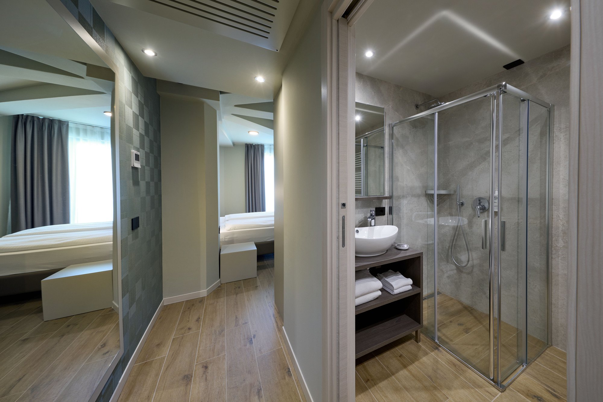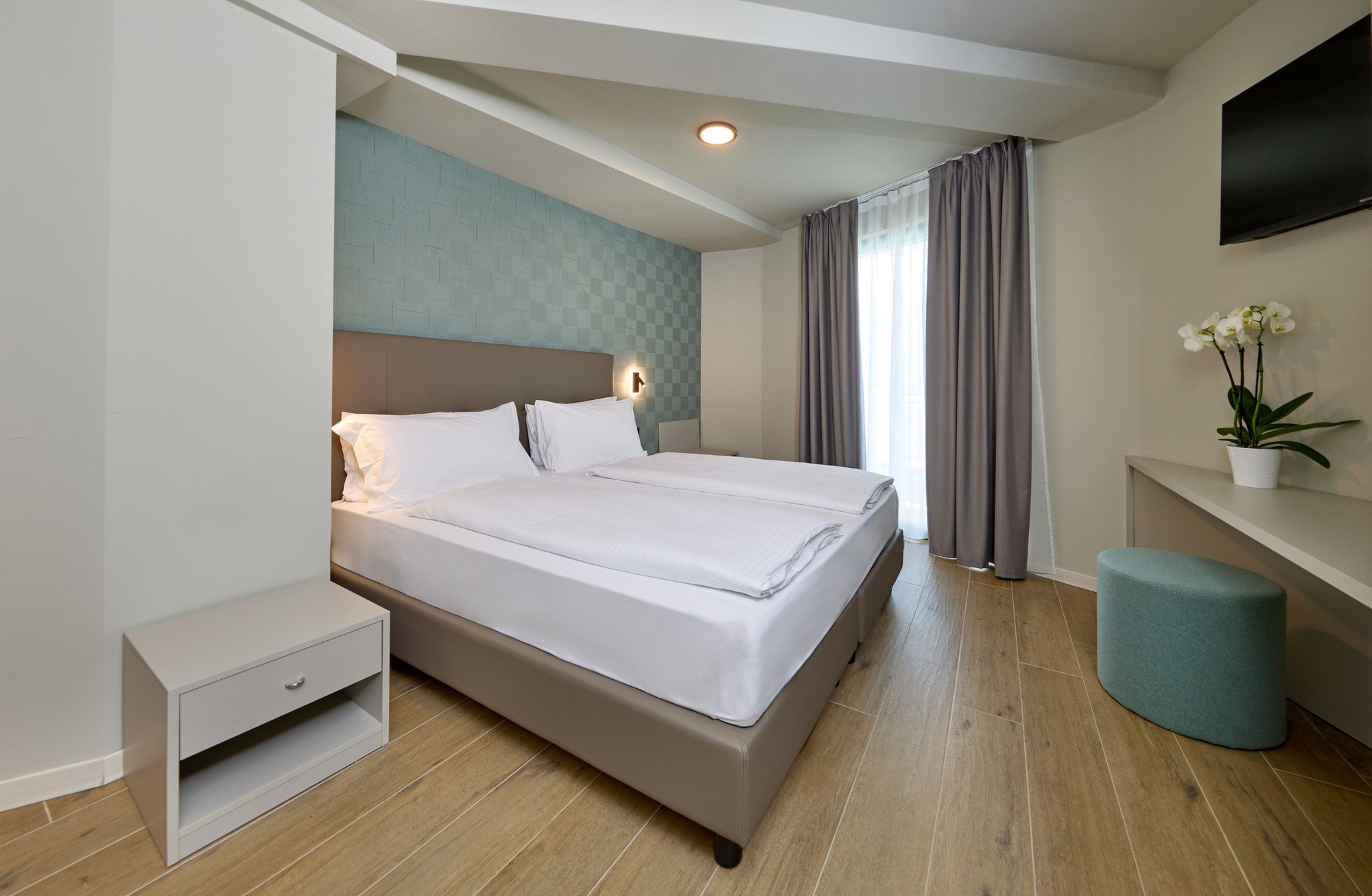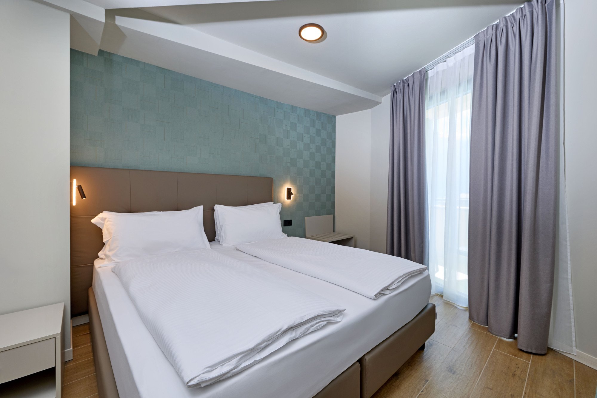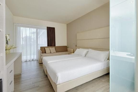 K dispozici celkem 226 pokojů různých kategorií, vybavených TV, trezorem, fénem, telefonem, klimatizací a minibarem (naplnění za poplatek). Pokoje jsou umístěné v hlavní budově a nebo v různých depandancích (vilách).Pokoje Standard pro 2/4 osoby: pokoj s manželským lůžkem nebo 2 lůžky, koupelna, většina pokojů s balkonem. Pokoje pro 3 a 4 osoby na vyžádání.Pokoj s bočním výhledem na jezero pro 2/4 osoby: pokoj s manželským lůžkem nebo 2 lůžky, rozkládací pohovka pro 1/2 osoby, koupelna, balkon s bočním výhledem na jezero.Pokoj Superior Villa Calmetta pro 2 osoby: pokoj s manželským lůžkem nebo 2 lůžky, koupelna, balkon s výhledem na jezero. Kompletně zrekonstruované pokoje, nachází se cca 250 m od hlavní budovy.Pokoj Superior Villa Lucia pro 2/4 osoby: pokoj s manželským lůžkem nebo 2 lůžky, koupelna, balkon nebo terasa. Nedávno zrekonstruované pokoje.Pokoj Superior Villa Blumen pro 2/4 osoby: pokoj s manželským lůžkem nebo 2 lůžky, koupelna, některé navíc s balkonem. Nedávno zrekonstruované pokoje, jsou propojeny chodbou s hlavní budovou.Maximální obsazení: 3 dospělí / 2 dospělí a 2 děti do 11,99 let (vyjma pokoje Superior Villa Calmetta). Třetí a čtvrté lůžko může být i palanda.