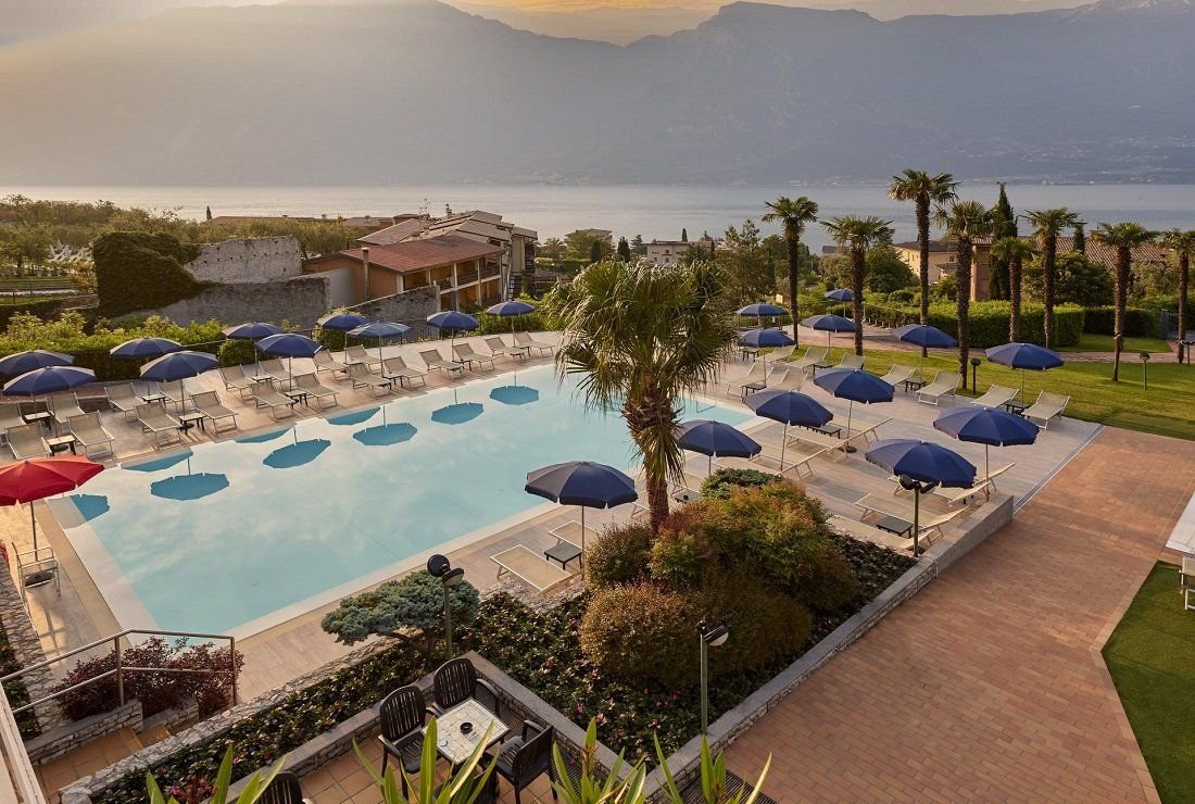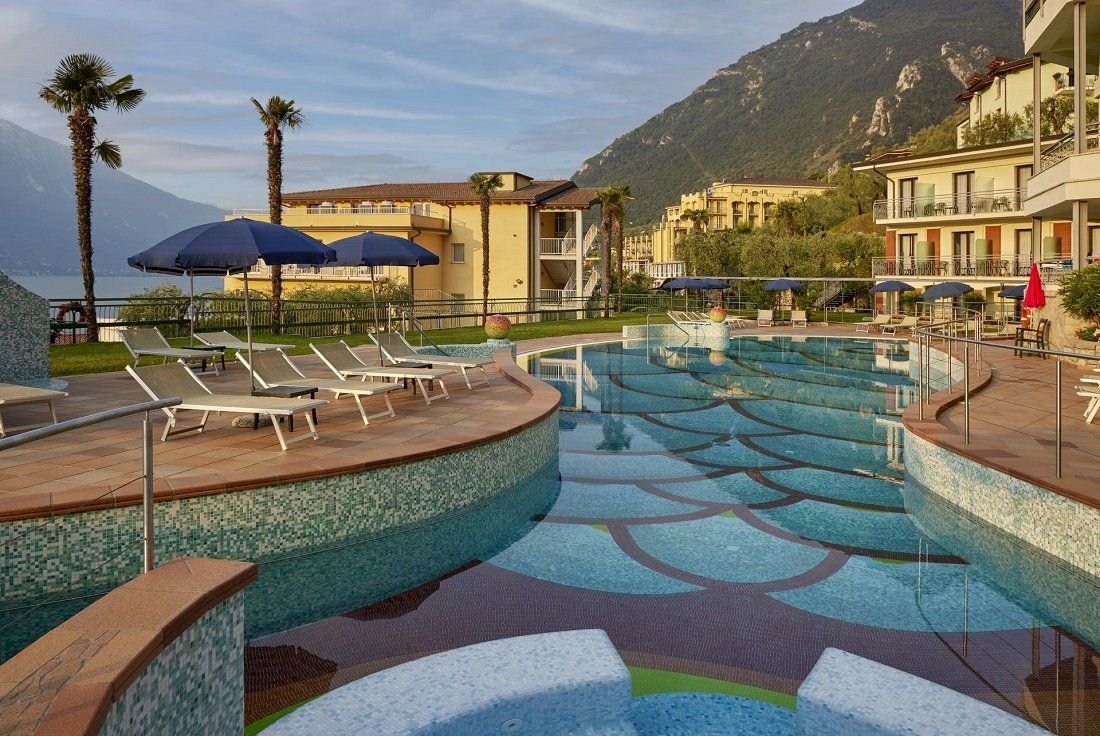 Hotel s bazénem ve městečku Limone sul Garda u západního břehu Gardského jezera.