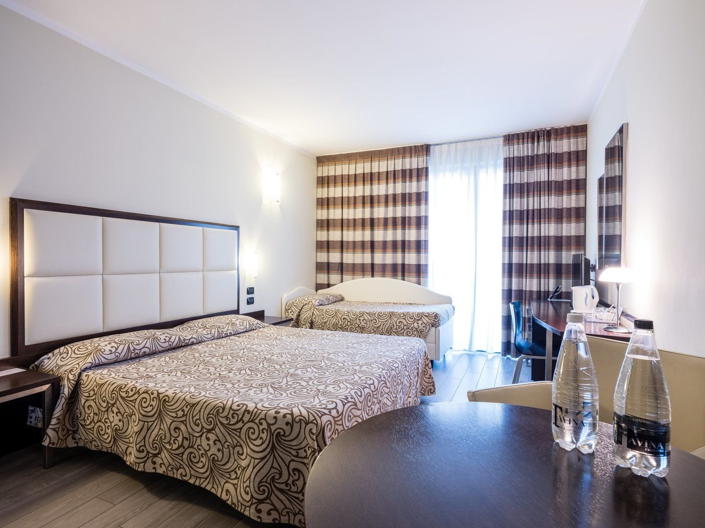 Pokoje Standard - ubytování pro 2 až 4 osoby- balkon nebo terasa - možnost přistýlky a dětské postýlky - varná konvice, minibar, trezor, TV-SAT, klimatizace (od června do září) - koupelna se sprchovým koutemSuperior Double - stejné vybavení jako Standard pokoj, jen prostrornější