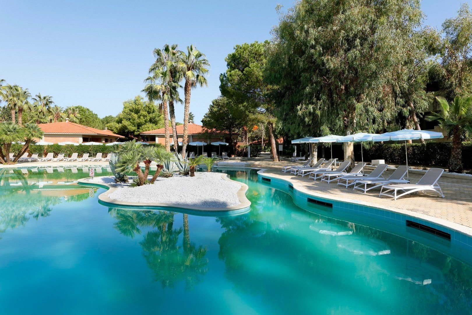 Vstupní hala s recepcí, hlavní restaurace Sikania, restaurace a la carte (italská, asijská, steak house, sport bar/snack bar - vybrané pokrmy mohou být za poplatek a u vybraných restaurací nutná rezervace), lobby bar, bar u bazénu, bar na pláži, sport bar (otevřený do 02:00), Wi-Fi ve společných prostorách zdarma, bazén (lehátka a slunečníky zdarma), relaxační bazén, dětské brouzdaliště, parkoviště (zdarma).