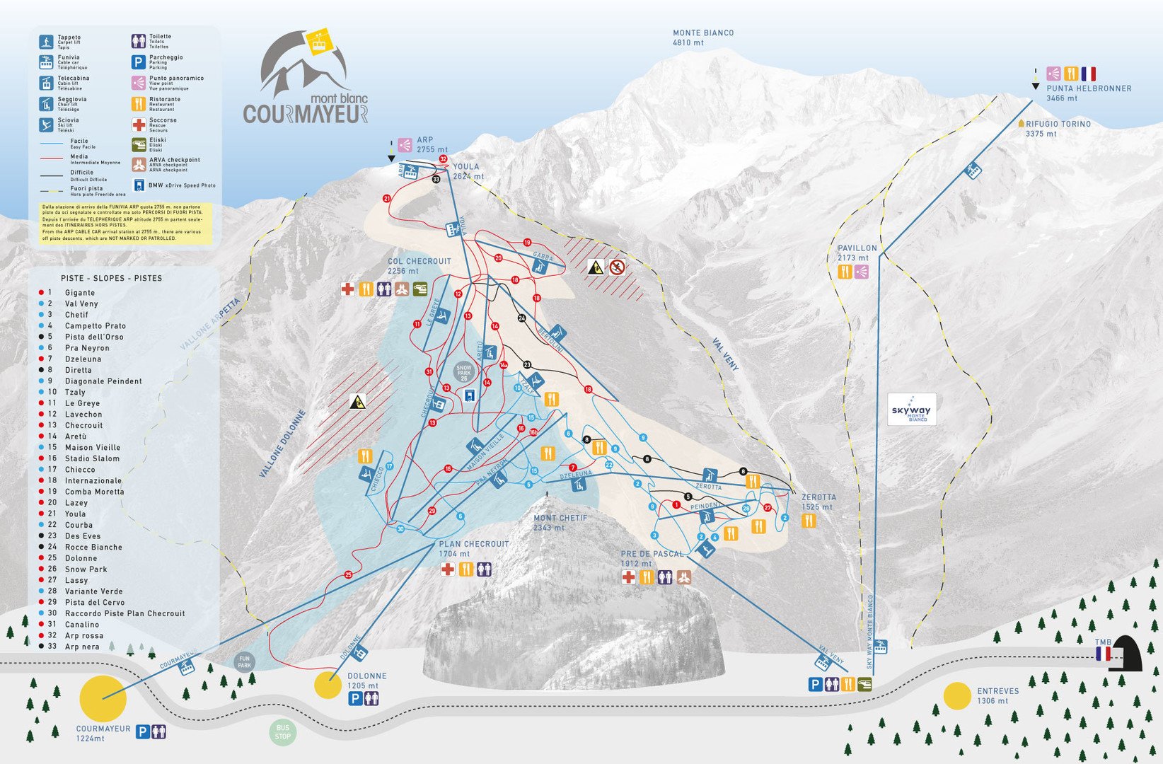 Středisko Courmayer je ideálním místem pro zimní dovolenou. Jsou zde bohaté možnosti pro kvalitní sjezdové lyžování, v blízkosti je až 39 km sjezdovek. Centrum střediska nabízí také mnoho restaurací, barů nebo sportovní centrum s další nabídkou různých sportů.Nabízí se také výlet do lázní Terme Pré Saint Didier, kde je možné si odpočinout po aktivním dni. Hosté zde naleznou sauna, vířivku, odpočinkovou místnost nebo venkovní bazén s úchvatným výhledem do okolí.
