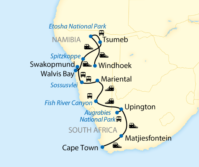 Luxusním vlakem národními parky JAR a Namibie