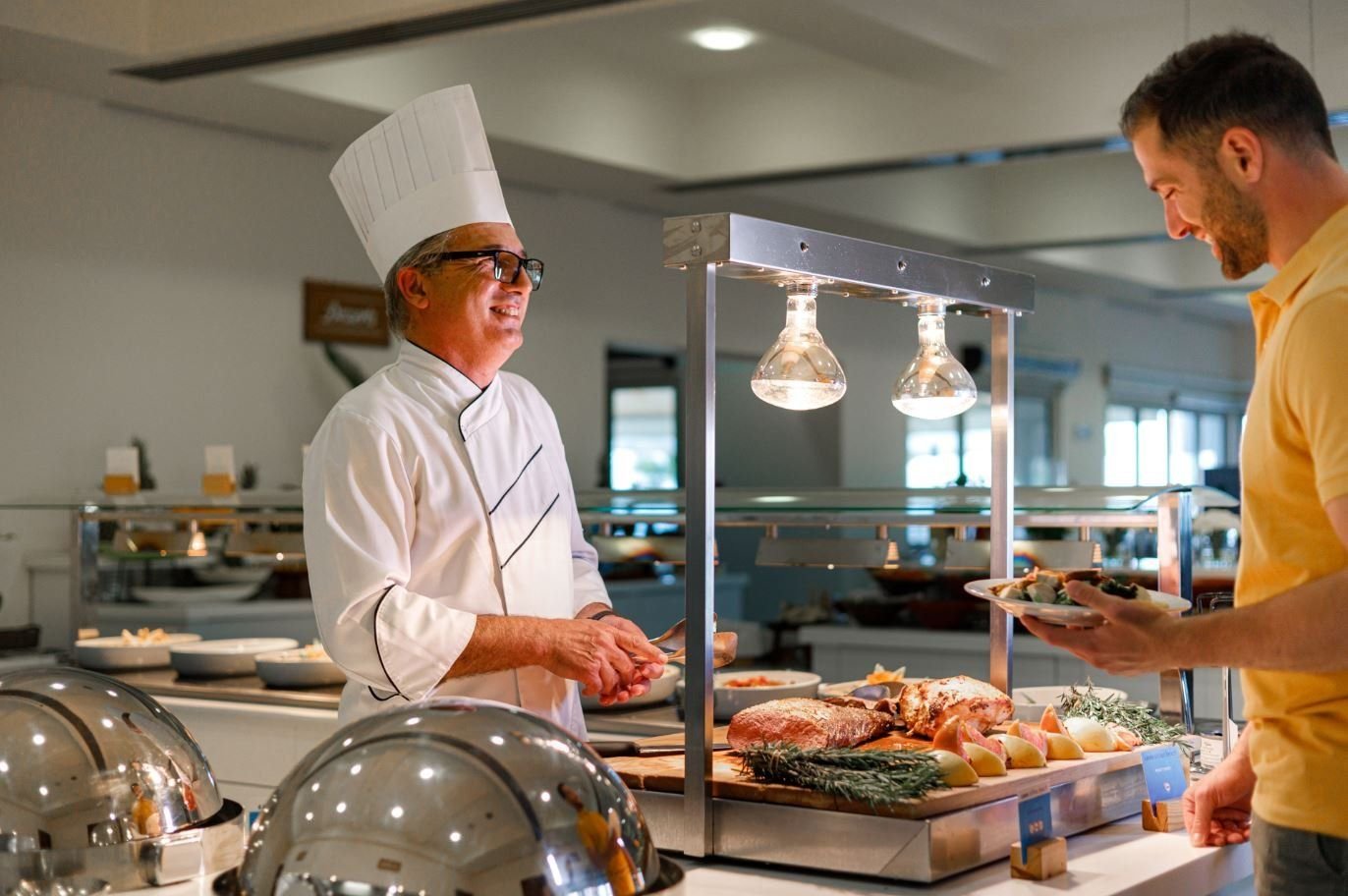 All inclusive - snídaně, obědy, večeře, drobné občerstvení mezi hlavními jídly v průběhu dne, vybrané alkoholické a nealkoholické nápoje v hodinách a místech určených hotelem. Restaurace à la carte nejsou součástí.Přesný rozpis zahrnutých jídel a nápojů obdrží klienti při check-inu na hotelu.Sport a zábava