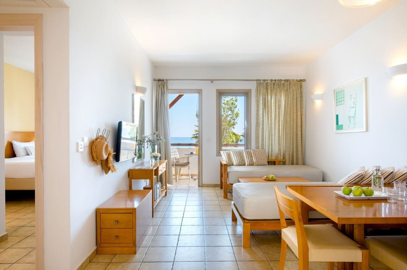 Studio - max. 2 dospělé osoby a 1 dítě na přistýlce, plocha cca 32 m²; TV, telefon, trezor, kuchyňka (mikrovlnná trouba, set na přípravu kávy / čaje, minilednice, varná plocha); vlastní příslušenství (WC, vana nebo sprchový kout, vysoušeč vlasů); balkon nebo terasa (stůl, židle). Výhled do okolí. Za příplatek výhled na moře.Apartmán standard - stejné vybavení jako Studio, navíc oddělená obývací část. Lze přidat až 2 přistýlky formou rozkládací pohovky. Možnost zvolit apartmán s jednou (plocha cca 42 m²) nebo se dvěma (plocha cca 62 m²) ložnicemi.Stravování