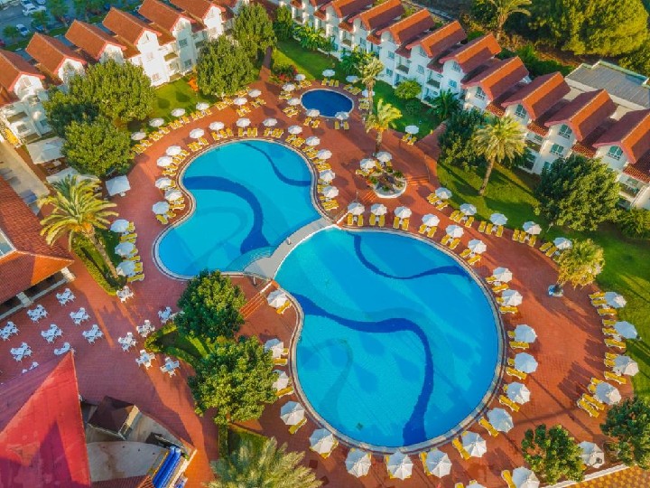 Hotel sestává z hlavní budovy, 2 vedlejších budov a vilek. Součástí je vstupní hala s 24h recepcí, hlavní restaurace (stravování formou bufetu), 2 a la carte restaurace (čínská a italská, za poplatek a s předchozí rezervací), 6 barů, kavárna, snack bar, diskotéka, fitness, wellness, 1 vnitřní a 2 venkovní bazény, aquapark se skluzavkami a tobogány, kadeřnictví, směnárna, kasino, minimarket, WiFi zdarma.