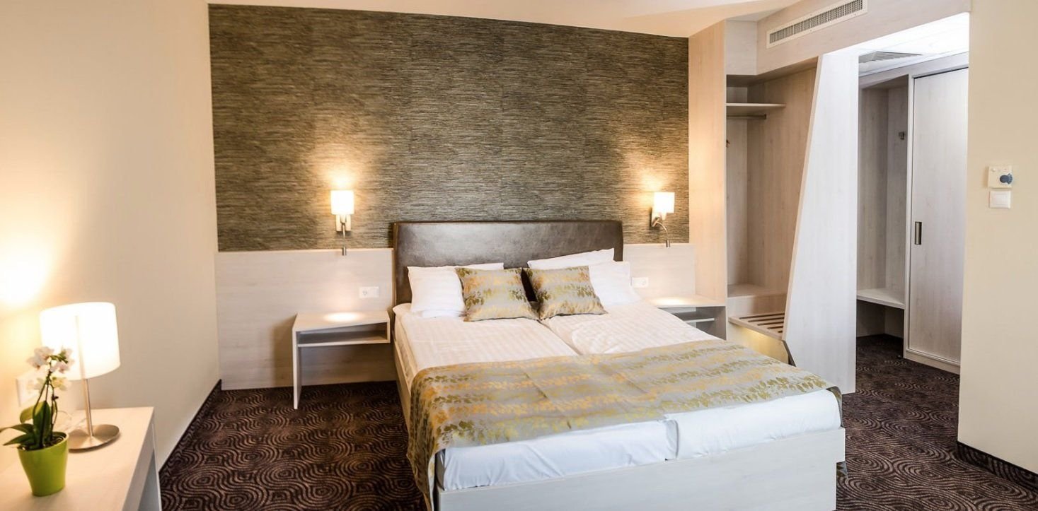 Dvoulůžkové pokoje s možností přistýlky, vlastní koupelna, WC. Pokoje disponují TV/sat., klimatizací, fénen a minibarem. Je možno zapůjčit si župan.