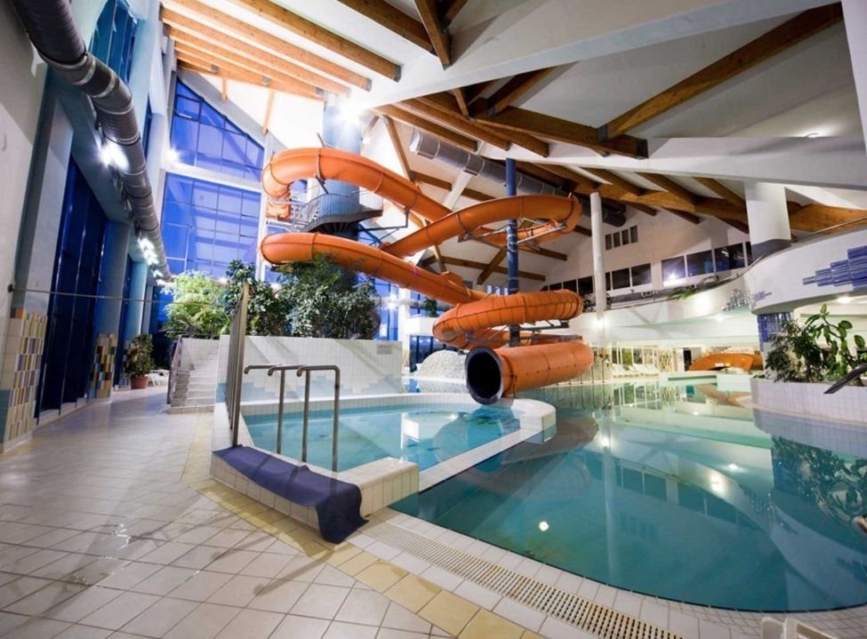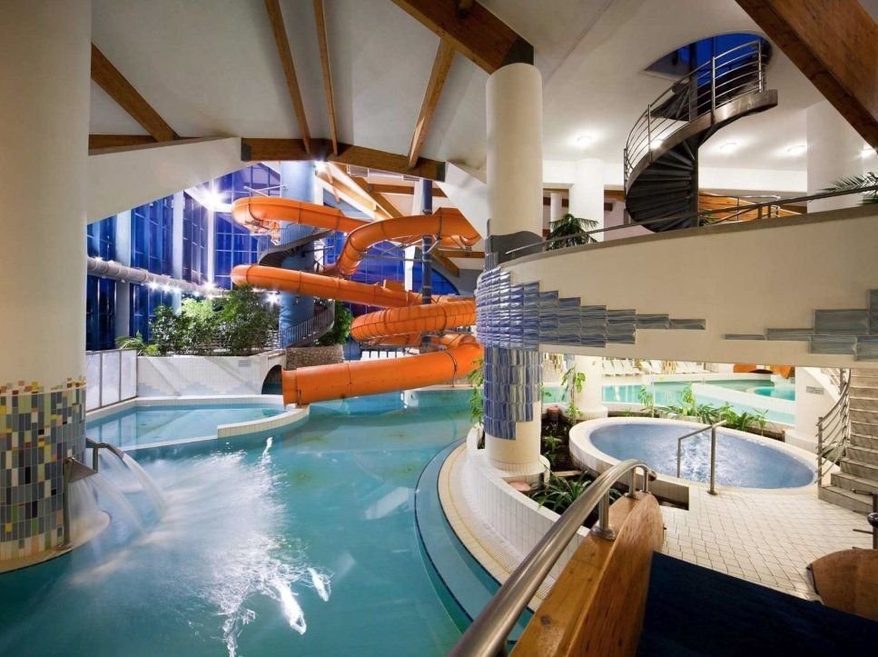 Celkem 13 bazénů (kryté, venkovní i termální - 36- 38 stupňů), dětský bazén s 94 m dlouhou skluzavkou, vířivka, divoká řeka, fitness, aquaerobic, sauna, infra sauna, spinning a stolní tenis. Za poplatek si lze zajít na masáž nebo lze zakoupit různé další lázeňské procedury.